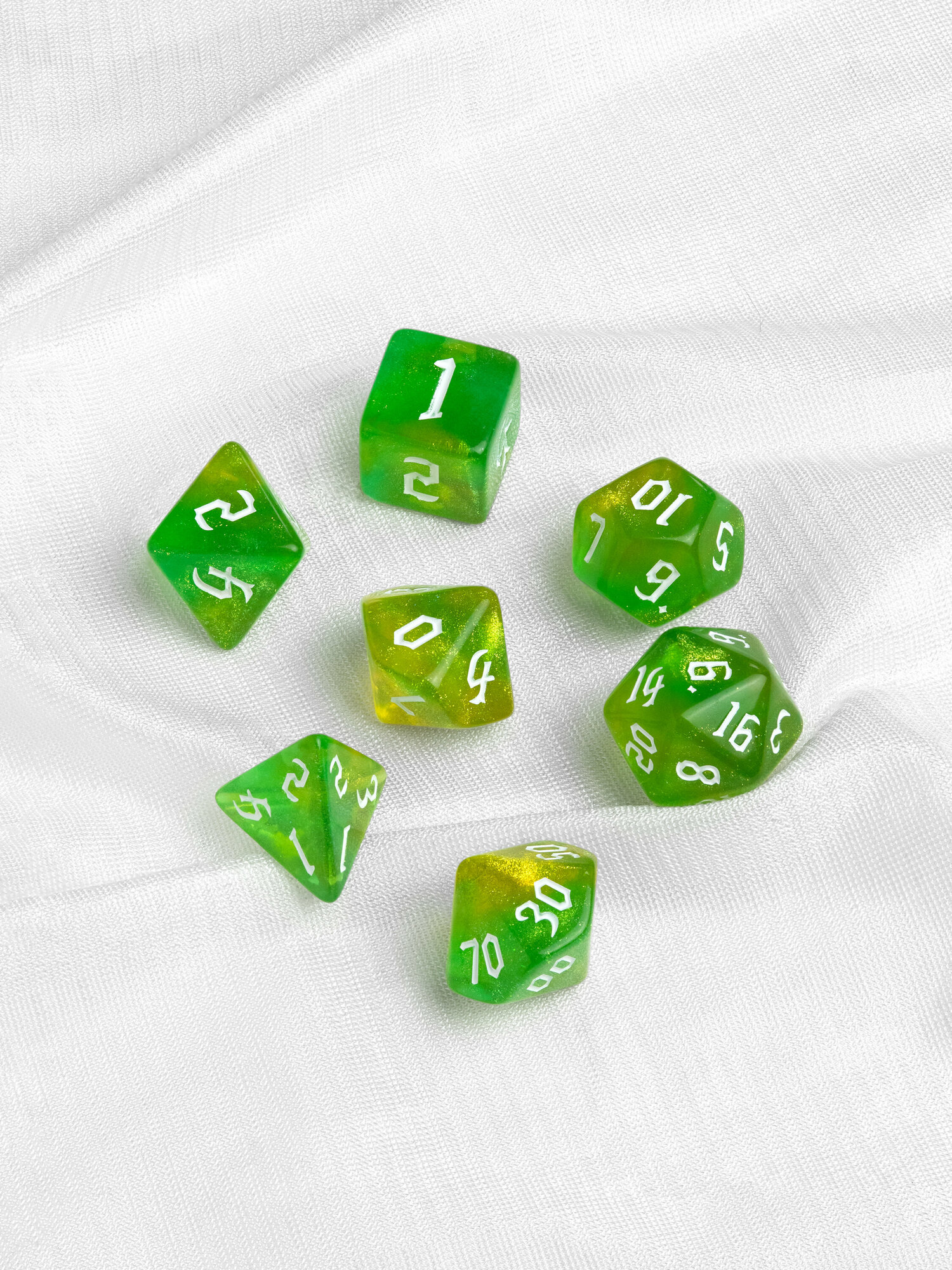 Купить Кости игральные, дайсы, кубики для DnD (ДнД) 7 шт, Желто-зеленый