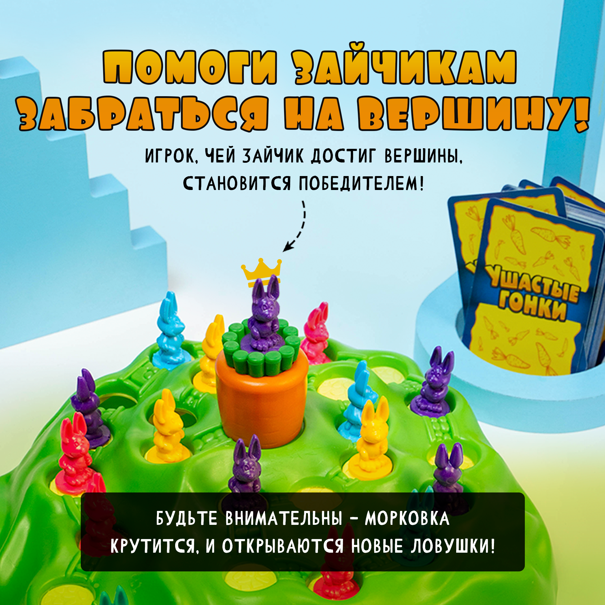 Настольная игра на внимательность «Ушастые гонки», 24 карточки, 16 зайцев, 2-4 игрока, 4+