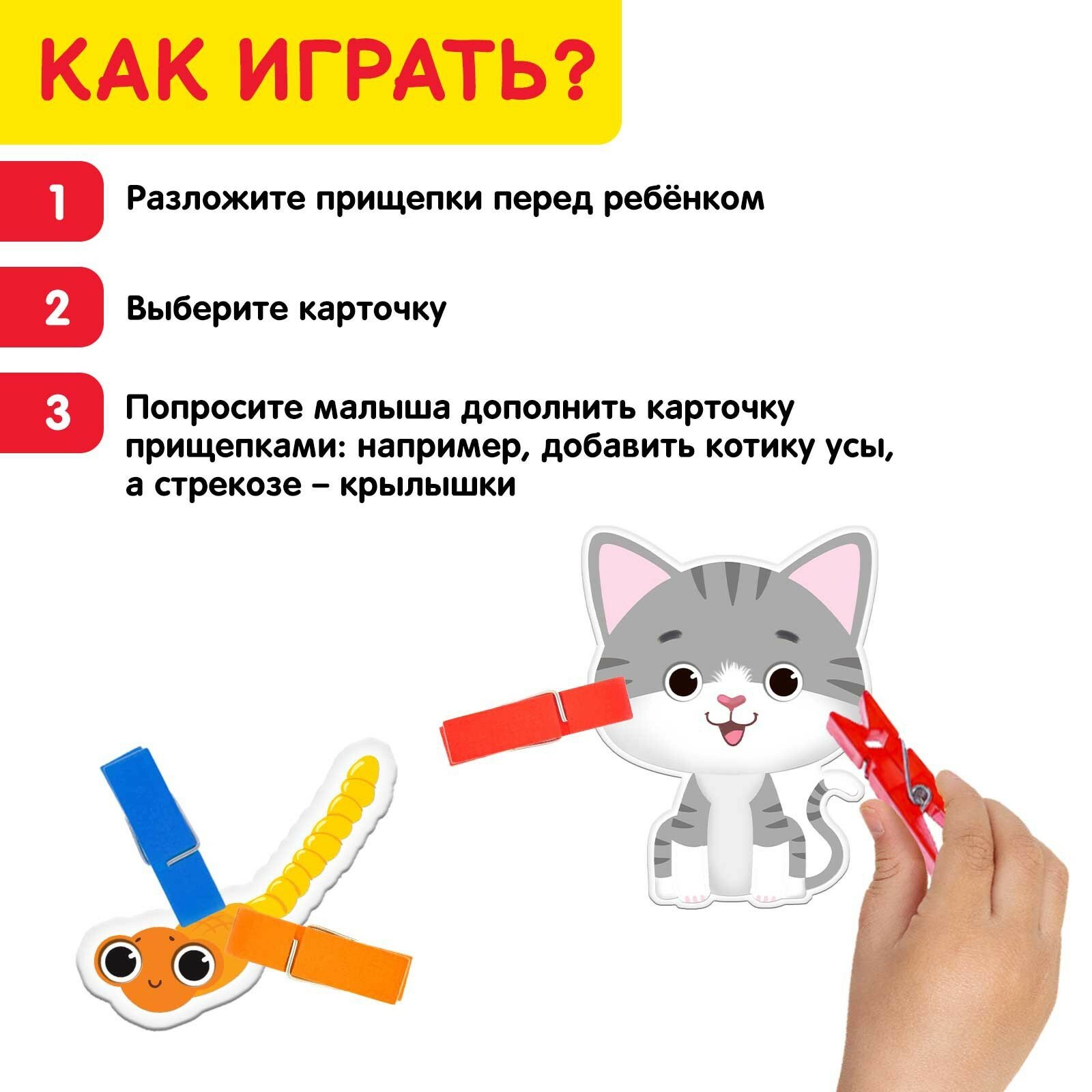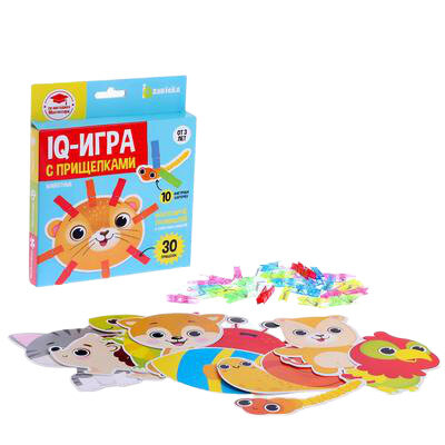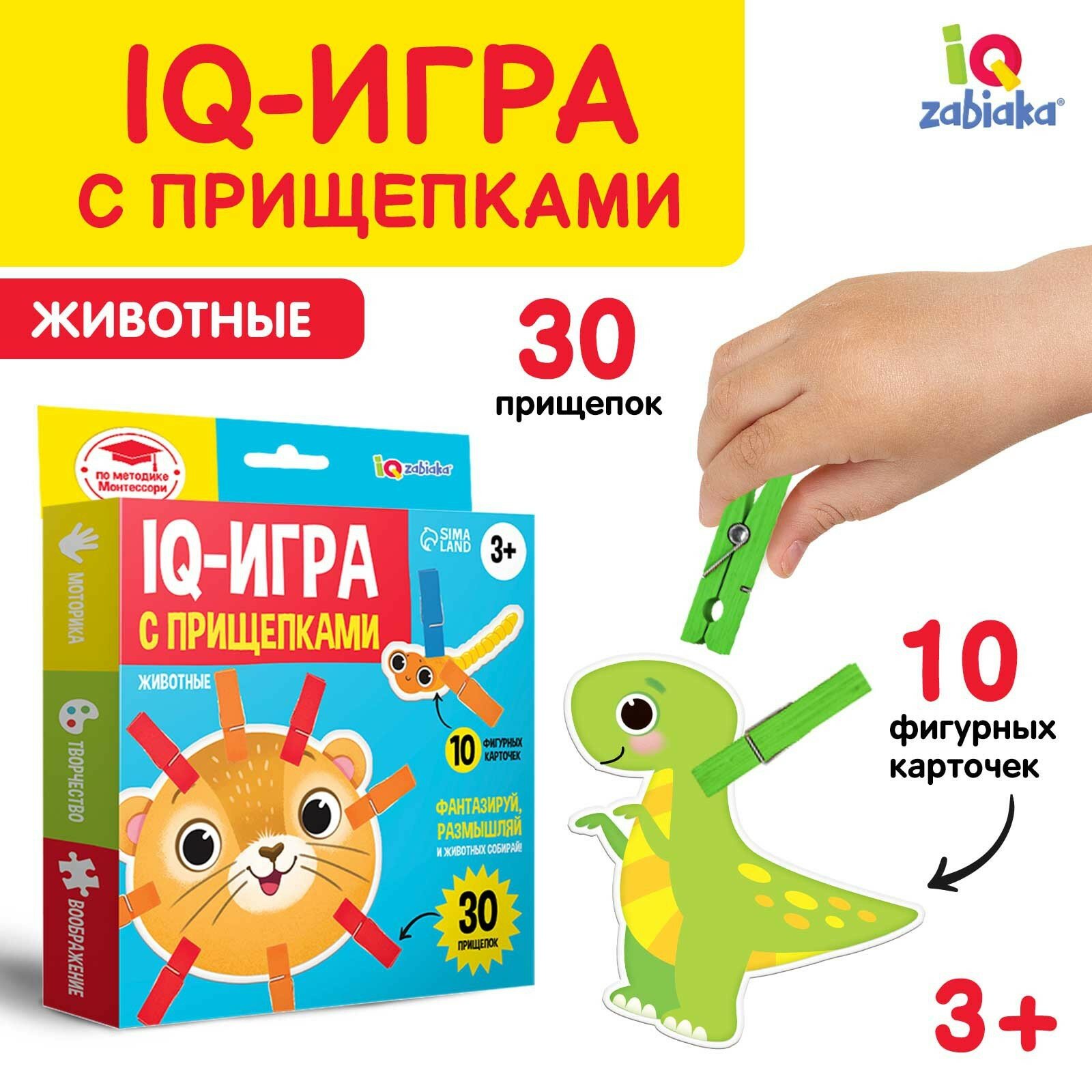 Развивающая IQ-игра с прищепками "Животные", 10 картинок, 30 прищепок
