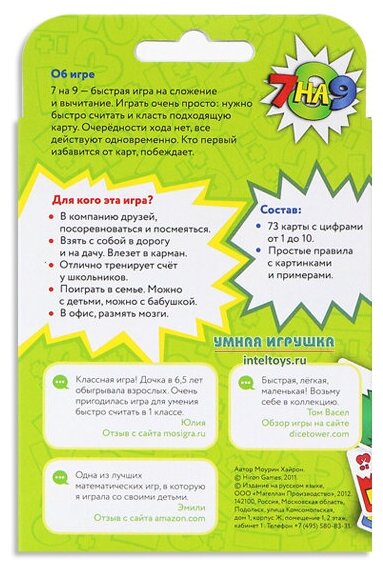 | Комплектация | 73 карты с цифрами от 1 до 10, правила игры |