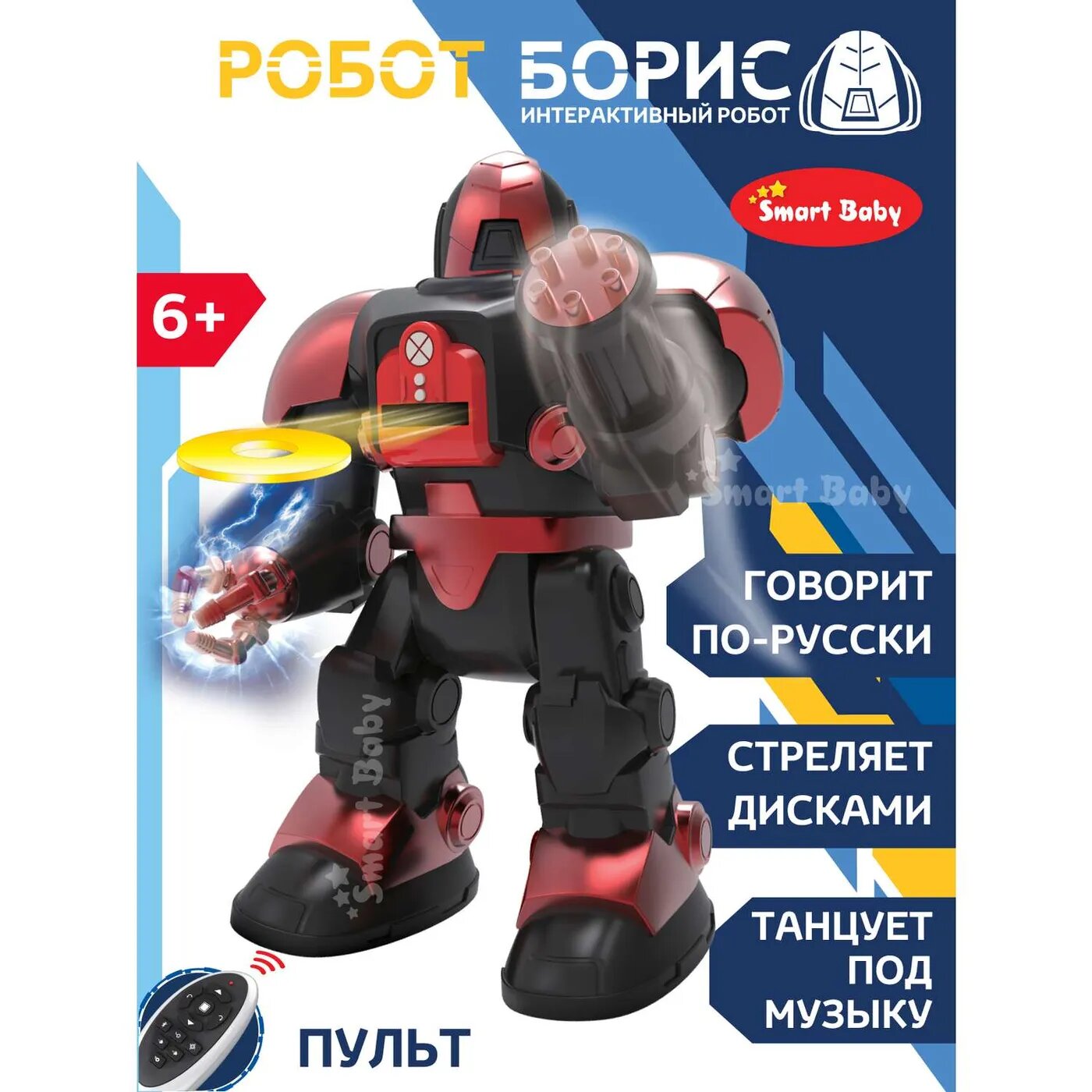 Ниже Вы можете прочитать отзывы на Интерактивный робот на радиоуправлении Борис ТМ Smart Baby, ходит, танцует, обучает интересным фактам о космосе, стреляет дисками, свет/звук, ознакомится с подробными характеристиками, посмотреть интересные обзоры и фотографии на Интерактивный робот на радиоуправлении Борис ТМ Smart Baby, ходит, танцует, обучает интересным фактам о космосе, стреляет дисками, свет/звук.