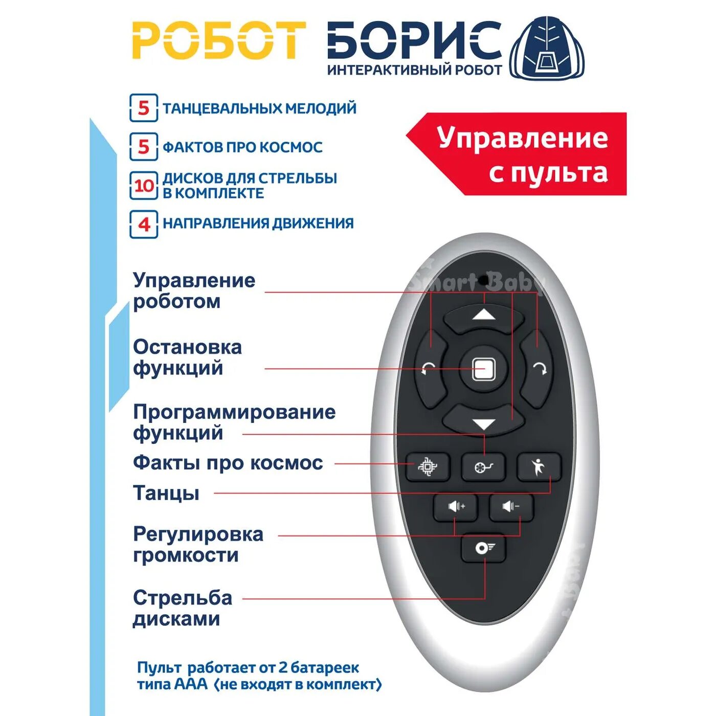 Купить Интерактивный робот на радиоуправлении Борис ТМ Smart Baby, ходит, танцует, обучает интересным фактам о космосе, стреляет дисками, свет/звук