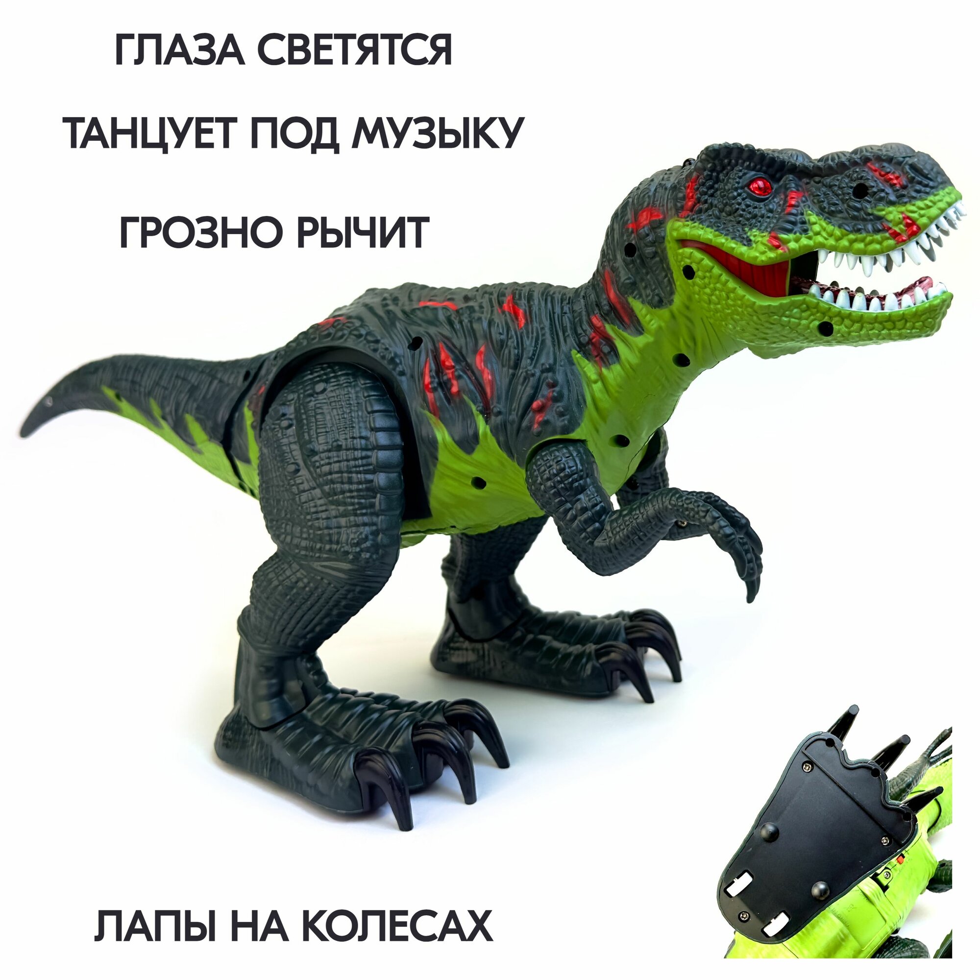 Ниже Вы можете прочитать отзывы на Радиоуправляемый робот динозавр Тираннозавр, глаза светятся, ходит, рычит, танцует, тирекс на пульте управления, 38х19х16 см, ознакомится с подробными характеристиками, посмотреть интересные обзоры и фотографии на Радиоуправляемый робот динозавр Тираннозавр, глаза светятся, ходит, рычит, танцует, тирекс на пульте управления, 38х19х16 см.