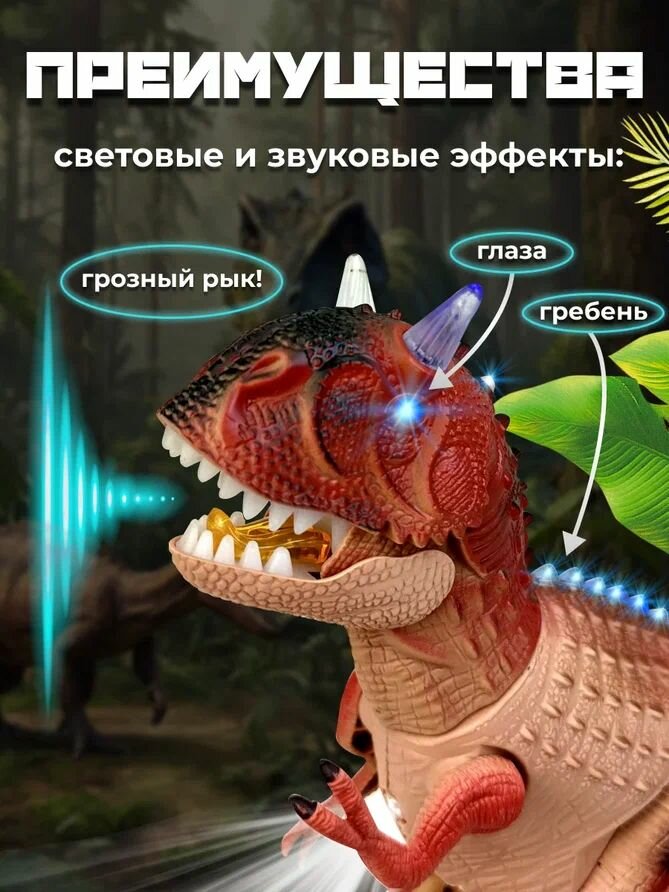 Купить Интерактивная игрушка динозавр Аллозавр, сенсор, ходит, рычит, глаза, пасть и гребешок светятся, 33х18х11см