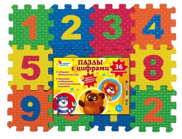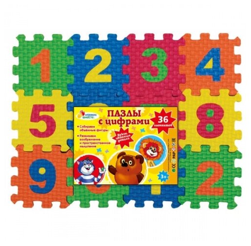 Пазлы для малышей Играем вместе Пазлы мягкие «Союзмультфильм с цифрами», 36 элементов