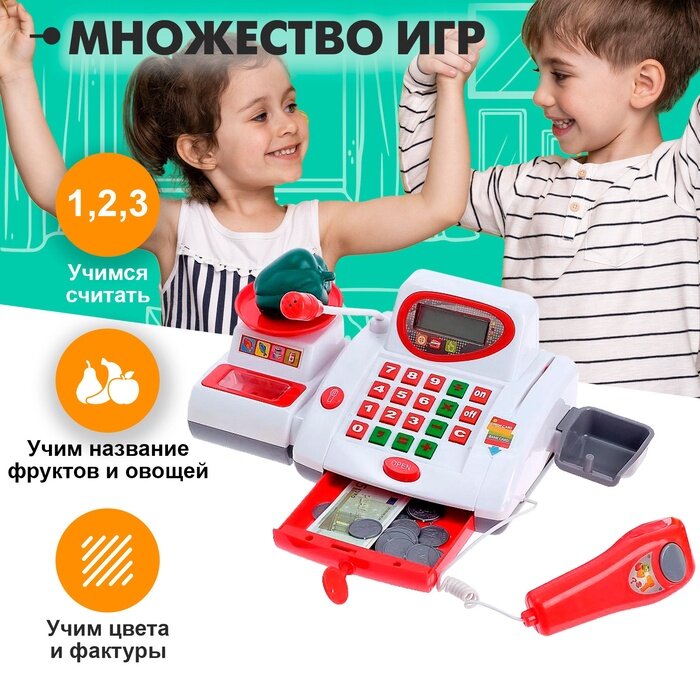 | В комплекте | весы, калькулятор, кассовый аппарат, корзина, продукты, сканер |