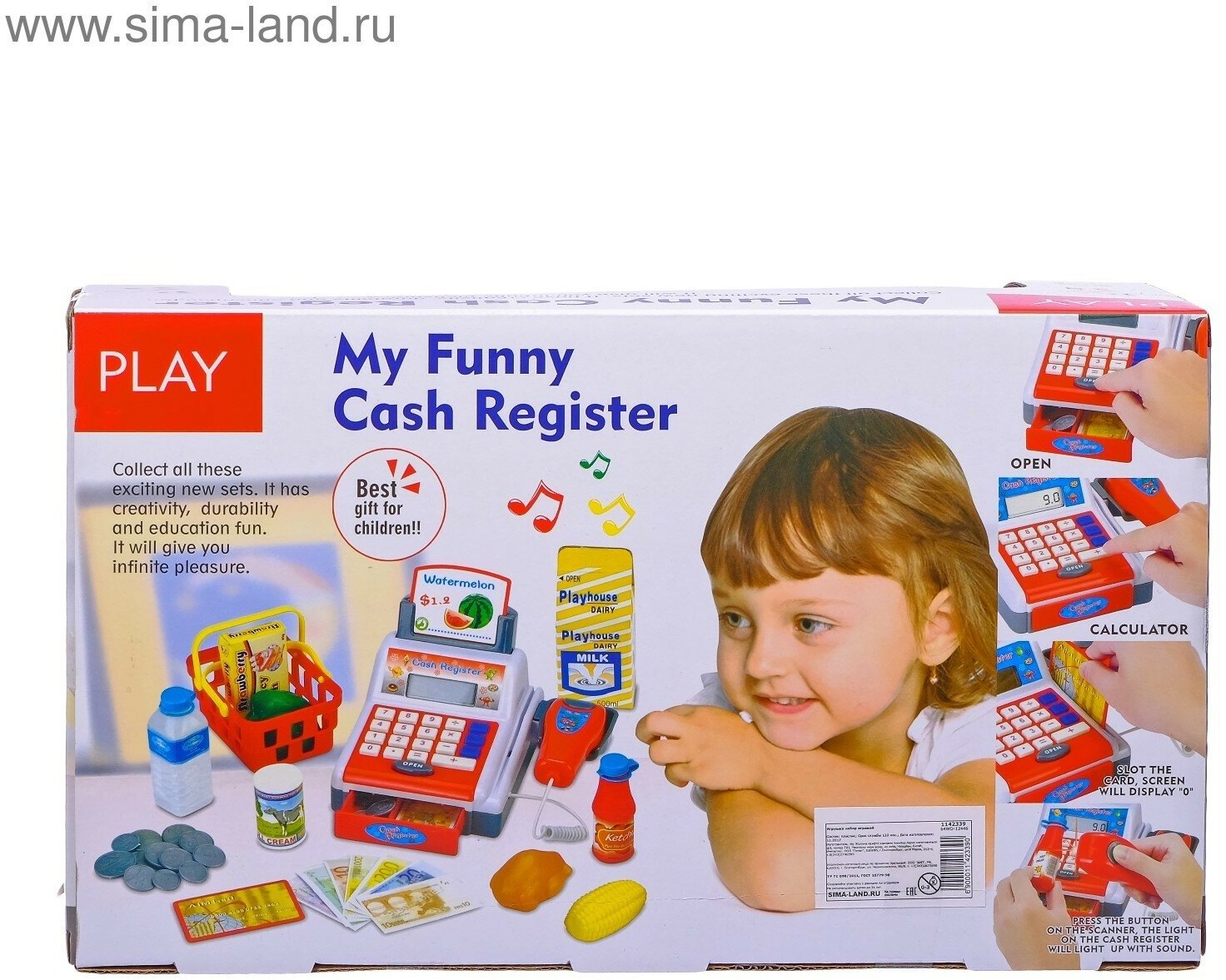 Касса с продуктами, звуковые эффекты, работает от батареек интересное: