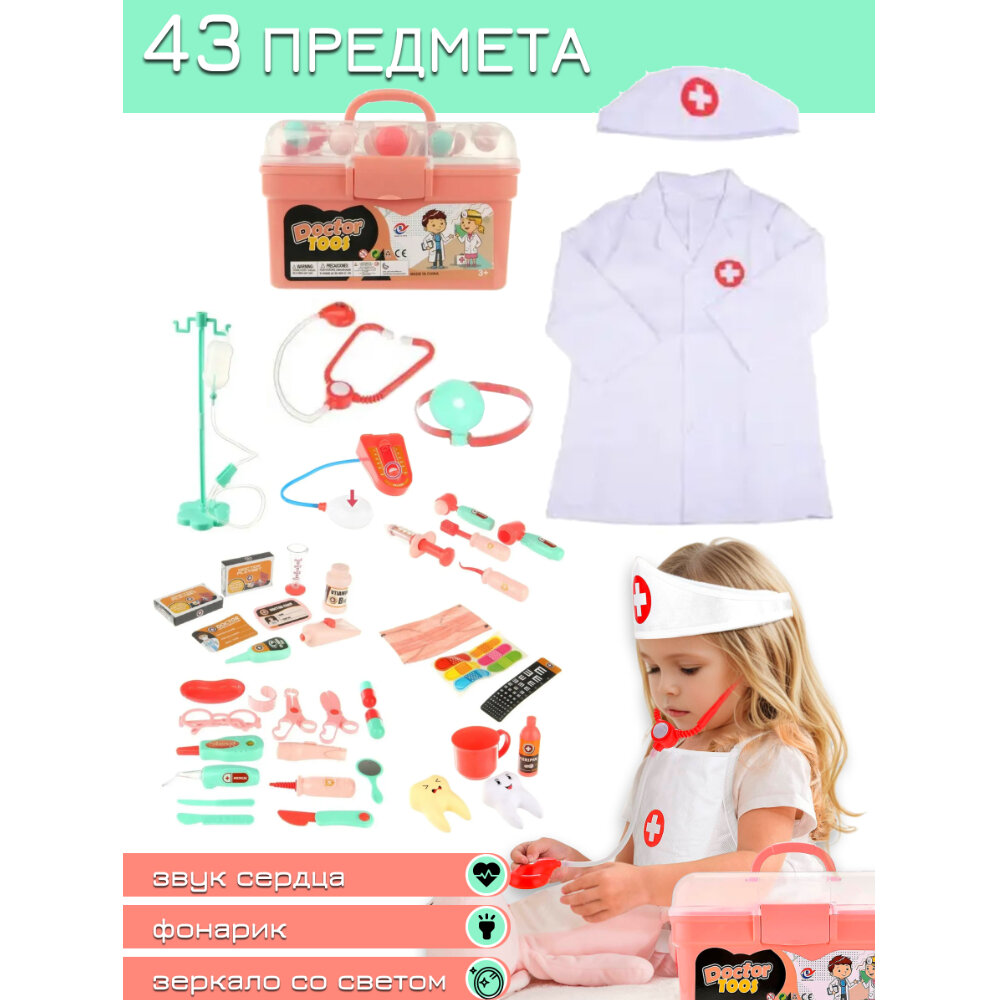 Сюжетно-игровой набор доктор врач детский с аксессуарами, 43 предмета в чемодане 26 х 17 х 17 см, световые и звуковые эффекты, 1867-4 интересное: