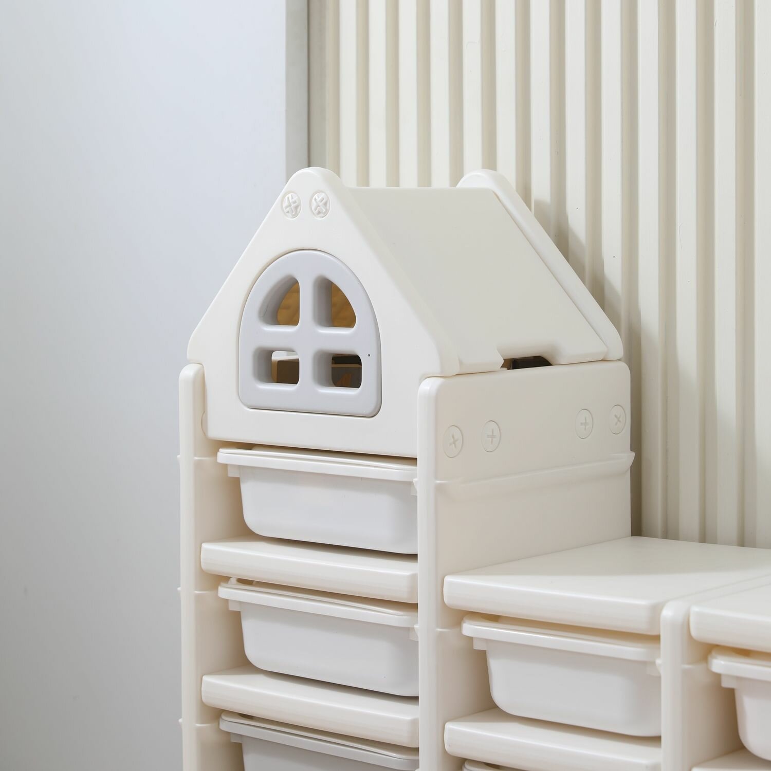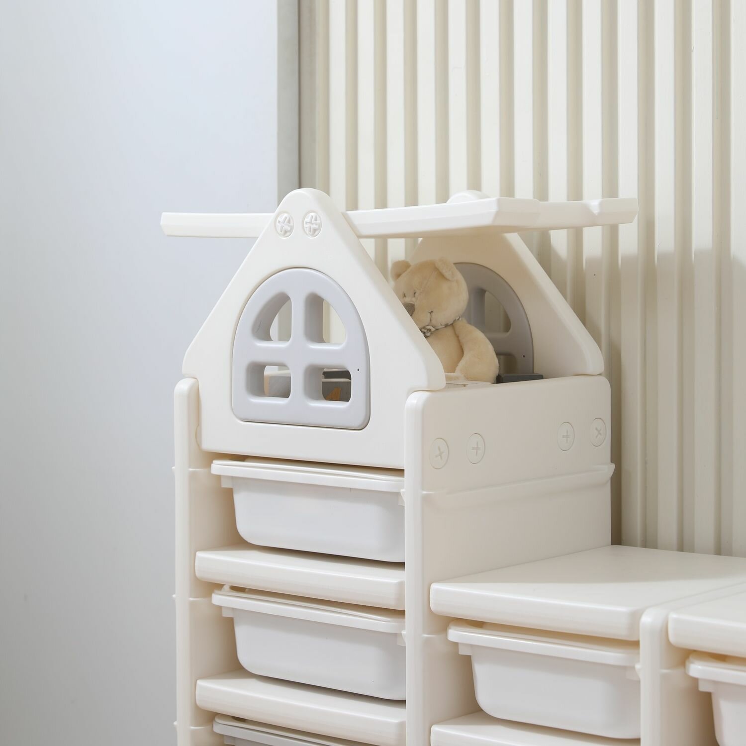 Стеллаж для игрушек UNIX Kids Moon 13, с тележкой, 3 полки, 10 ящиков, пластик, 179х93х31 см