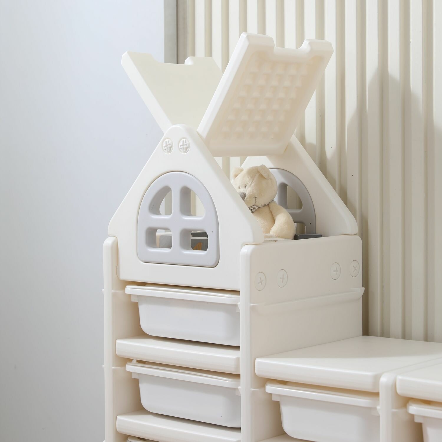 Стеллаж для игрушек UNIX Kids Whale White 5 ящиков + полки, напольный в детскую комнату, пластиковый, белый