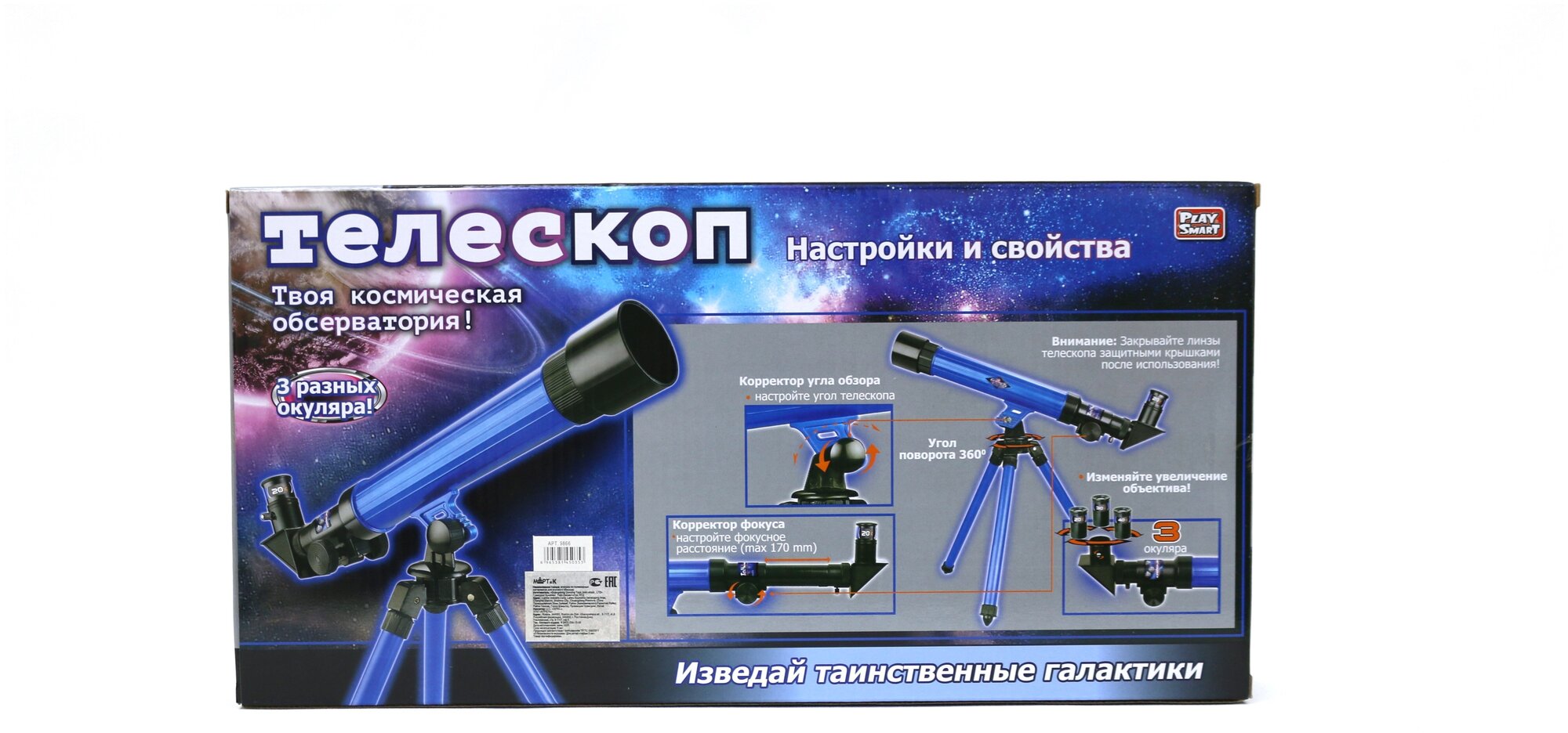 Купить Телескоп детский PlaySmart 3 степени увеличения, 20x-30x-40x, развивающий набор