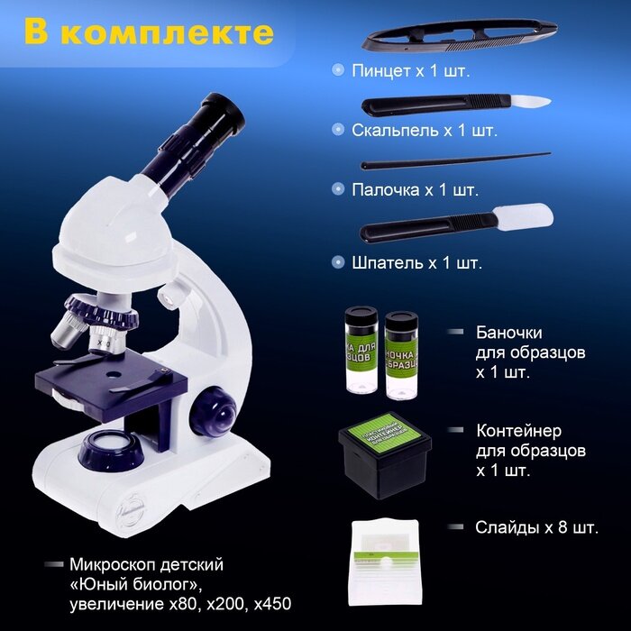 Микроскоп «Юный биолог», увеличение х80, х200, х450, с подсветкой интересное:
