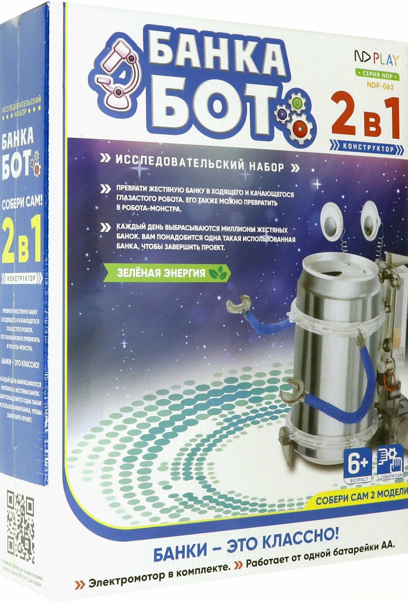 | Комплектация | 4 обода (полукольца) для корпуса, 1 короткая лапка, 1 длинная лапка, 2 руки-клещи, 2 держателя для соломинок, 1 игрушечный мотор с шестерней, винты, 4 болта с гайками, 2 колпачка зажима, 1 ящик для батареи, 2 зрачка, 2 пластиковые ноги, 1 крышка для мотора, оси, 1 ось с зубчатым колесом, 1 панель корпуса, 2 гнущиеся соломинки, 2 проволоки, 2 основы для глаз, инструкция |