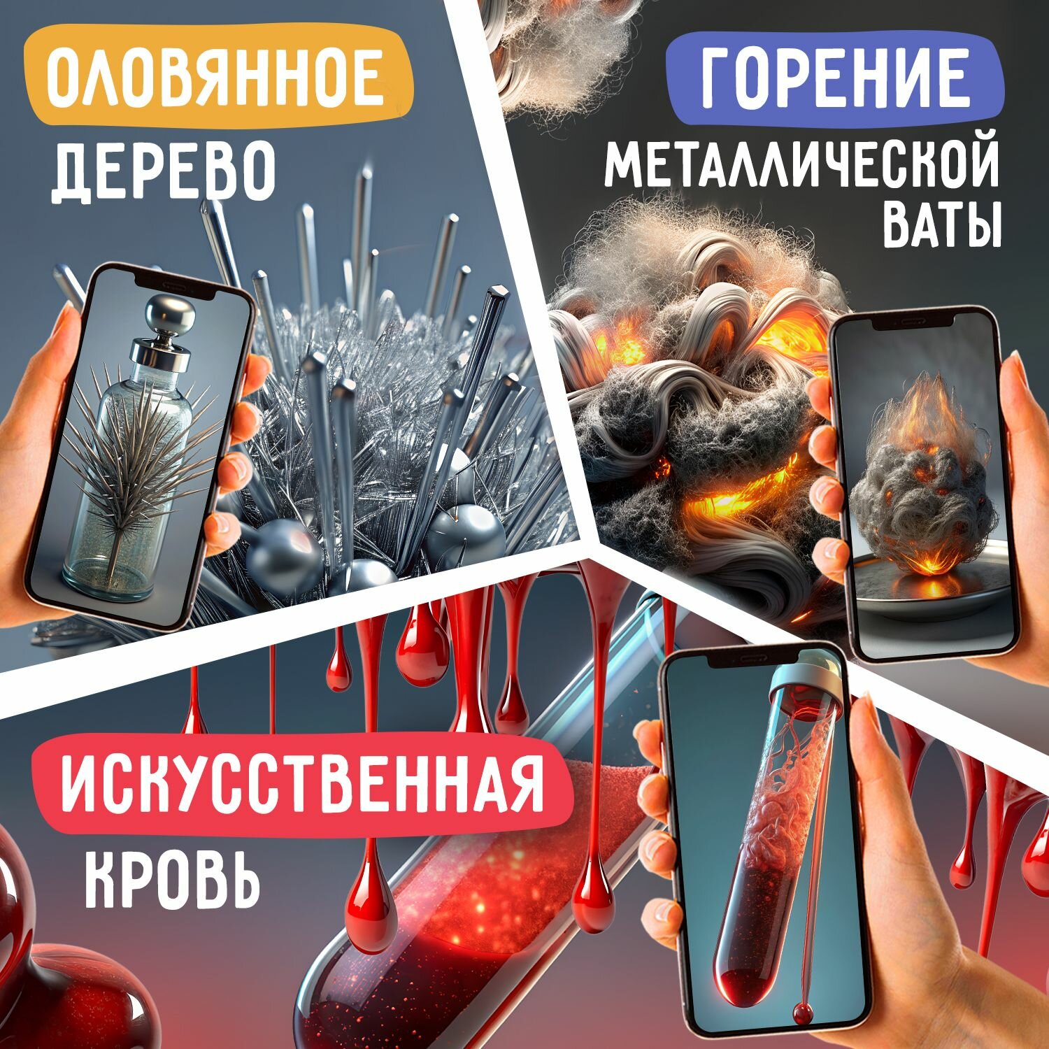 СохранитьБольшой подарочный набор в подарок на день рождения мальчику и девочке для опытов и экспериментов для детей "Здравствуй, Химия" / Домашние химические опыты для детей 12 в 1 / Наукасити интересное: