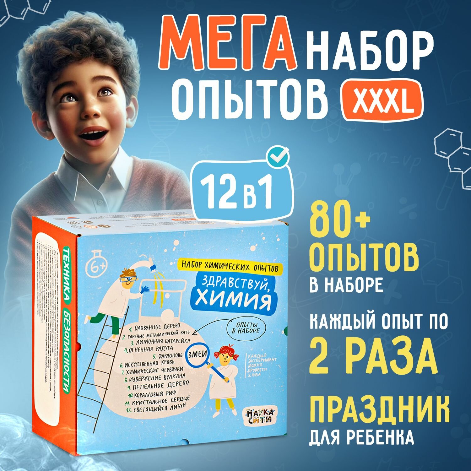 Купить Большой подарочный набор в подарок на день рождения мальчику и девочке для опытов и экспериментов для детей "Здравствуй, Химия" / Домашние химические опыты для детей 12 в 1 / Наукасити