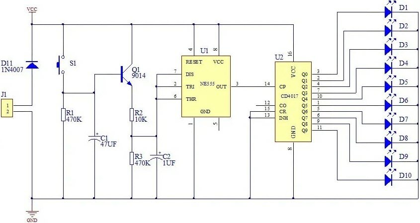 Купить Набор для самостоятельной сборки и пайки (конструктор) "Колесо Фортуны" на микросхемах CD4017 и NE555 (Н)