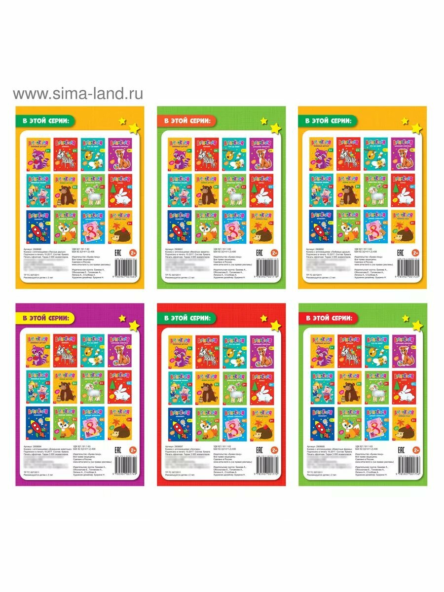 | Комплектация | Серия аппликаций представлена шестью книгами различной тематики: «Любимые друзья». «Зоопарк». «Домашние животные». «Лесные друзья». «Животные фермы». «Весёлые зверята» |