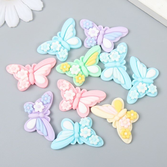 Купить Декор для творчества пластик "Бабочка в ромашках" набор 10 шт микс