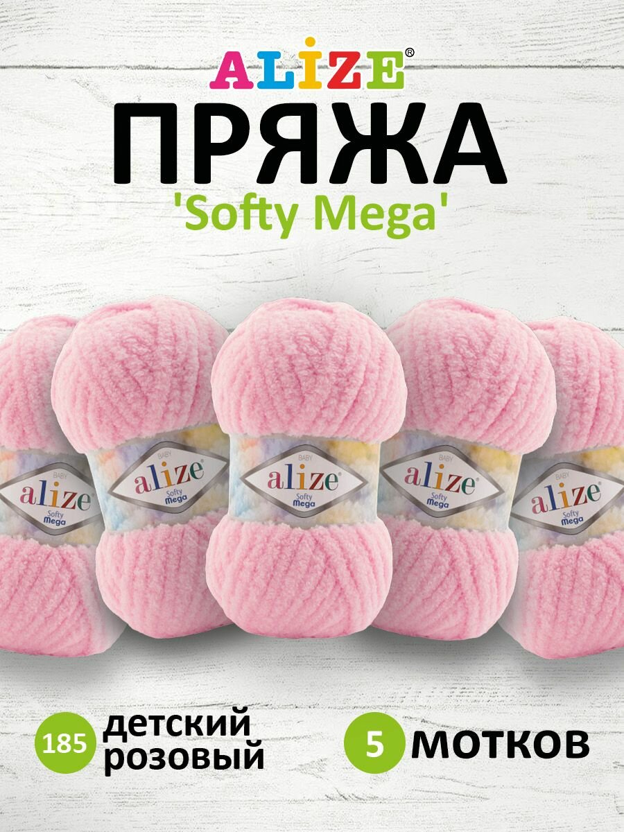 Купить Пряжа для вязания ALIZE 'Softy Mega', 100г, 70м (100% микрополиэстер) (185 детский розовый), 5 мотков