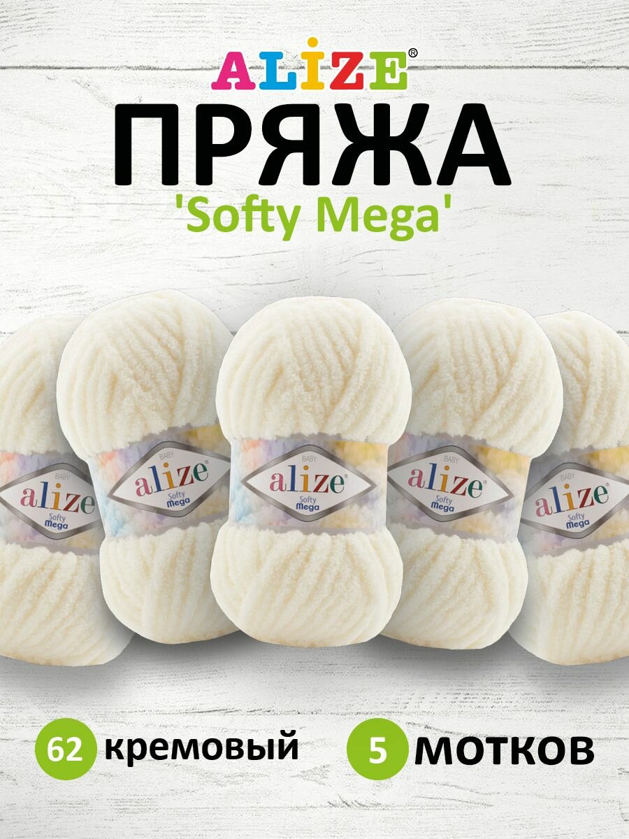 Купить Пряжа для вязания ALIZE 'Softy Mega', 100г, 70м (100% микрополиэстер) (62 кремовый), 5 мотков
