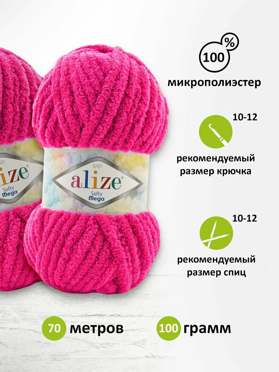 Пряжа Alize Softy Mega 798 бугенвиллия, 100 г, 70 м, 5 штук