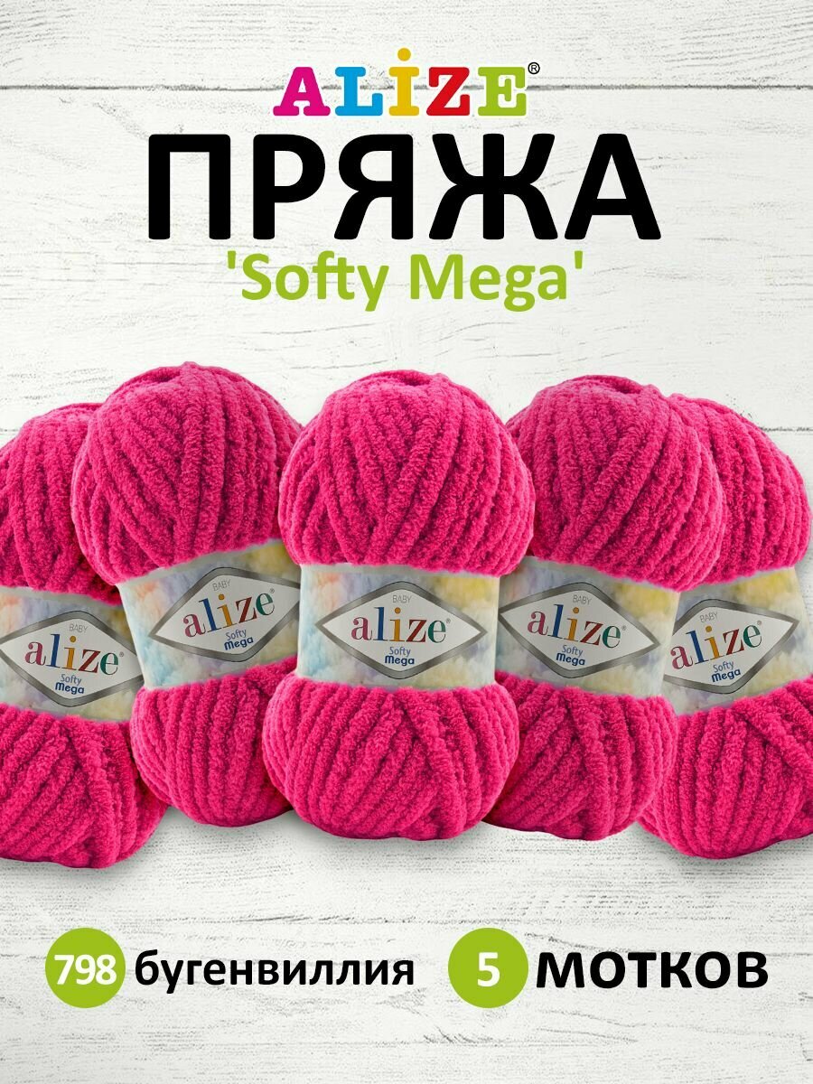 Купить Пряжа для вязания ALIZE 'Softy Mega', 100г, 70м (100% микрополиэстер) (798 бугенвиллия), 5 мотков