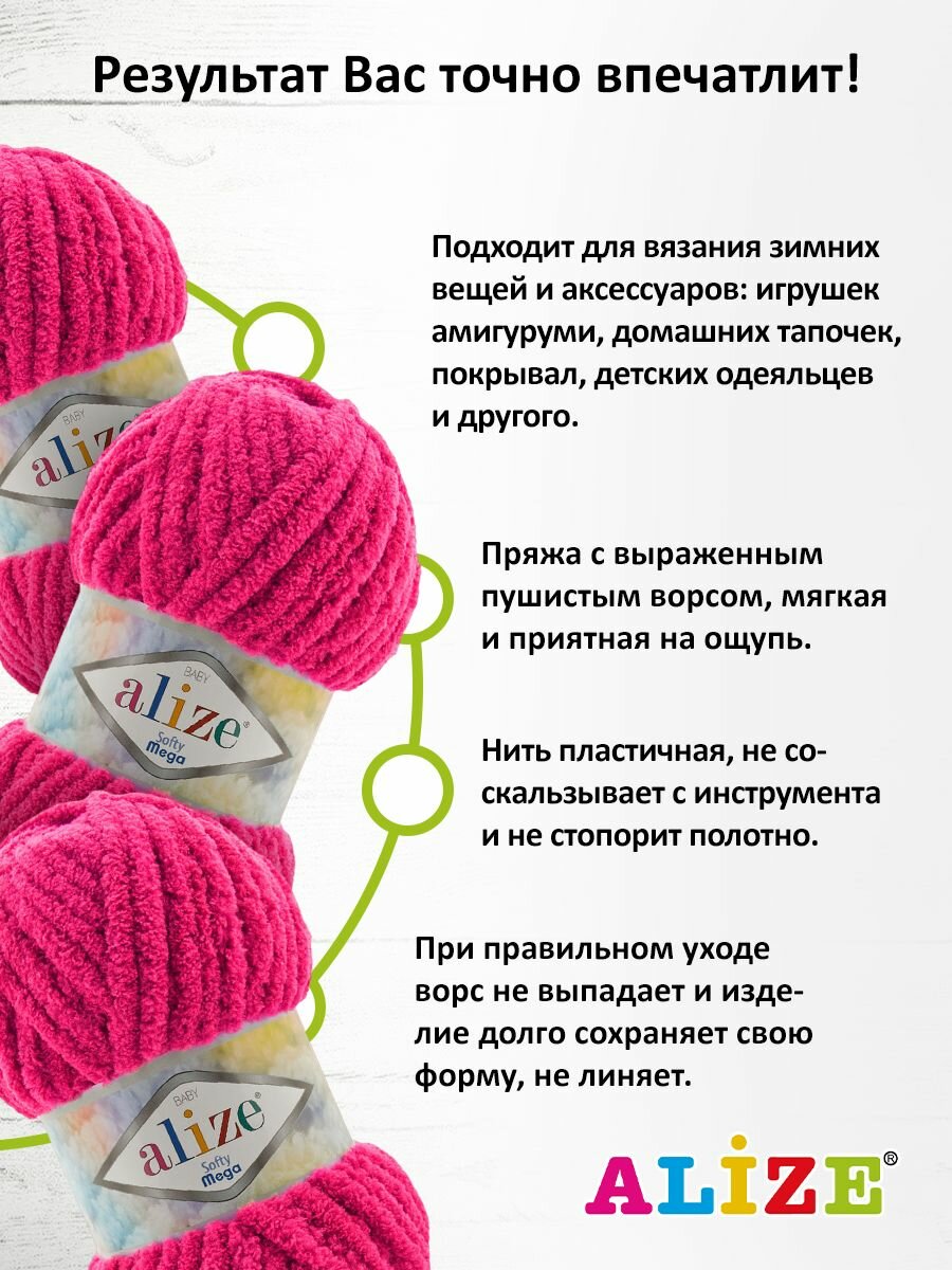 Пряжа для вязания ALIZE 'Softy Mega', 100г, 70м (100% микрополиэстер) (6046 секционный), 5 мотков