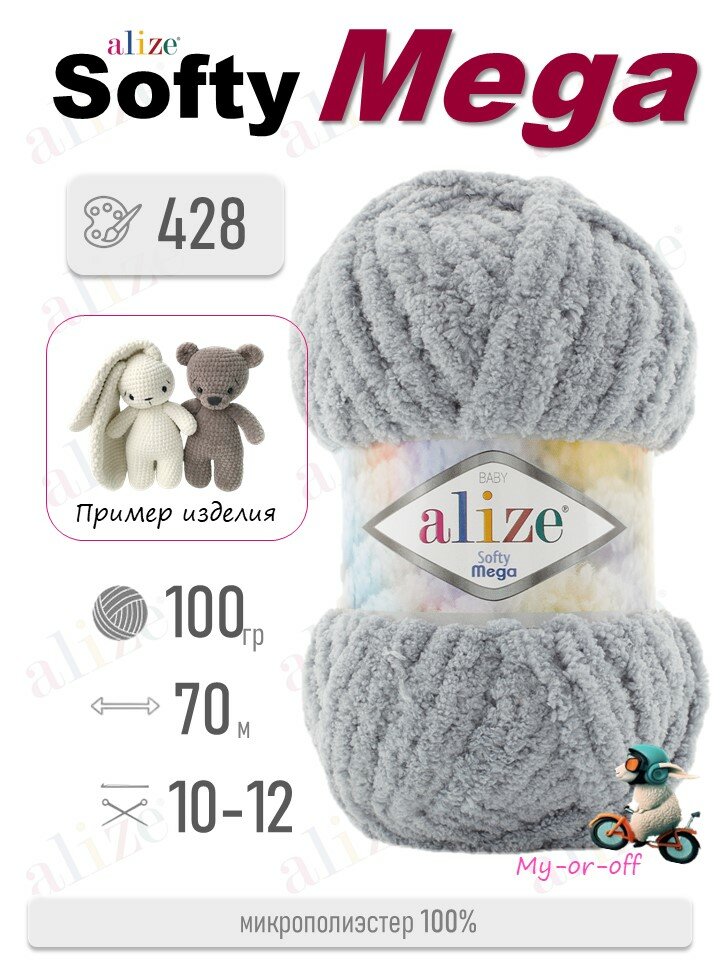 Пряжа Softy mega, Alize, серый - 428, 100% микрополиэстер, 5 мотков, 100 г, 70 м.