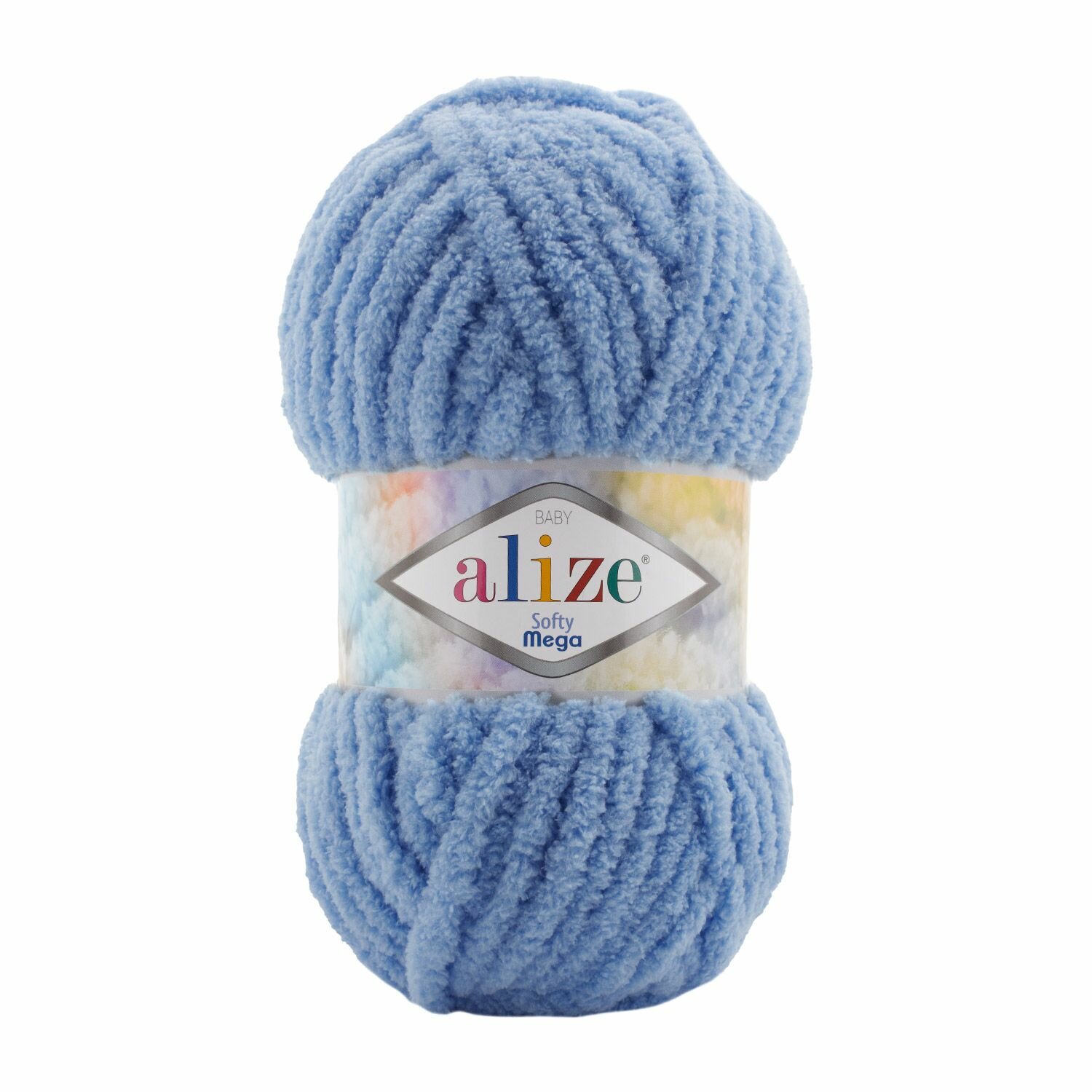 Пряжа Softy mega, Alize, голубой меланж - 374, 100% микрополиэстер, 5 мотков, 100 г, 70 м.
