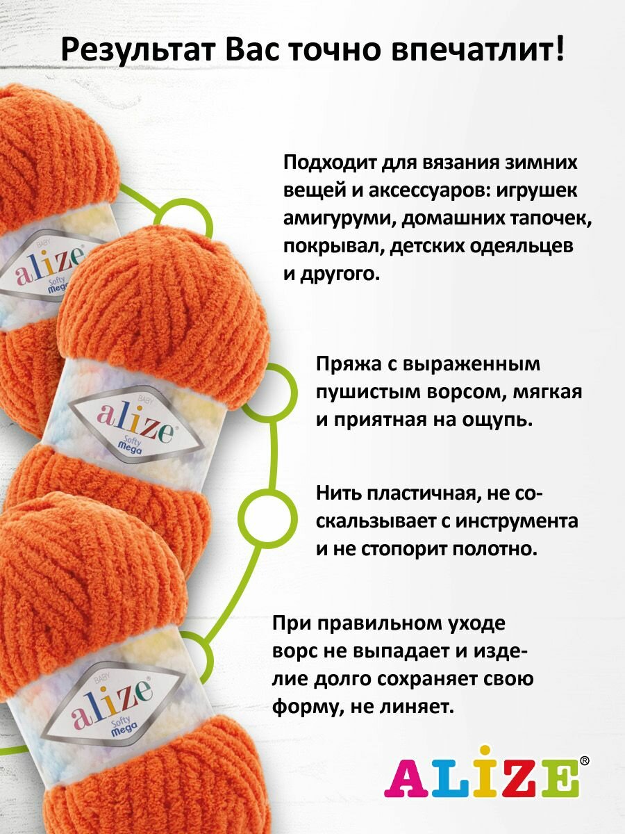Пряжа для вязания ALIZE 'Softy Mega', 100г, 70м (100% микрополиэстер) (6046 секционный), 5 мотков