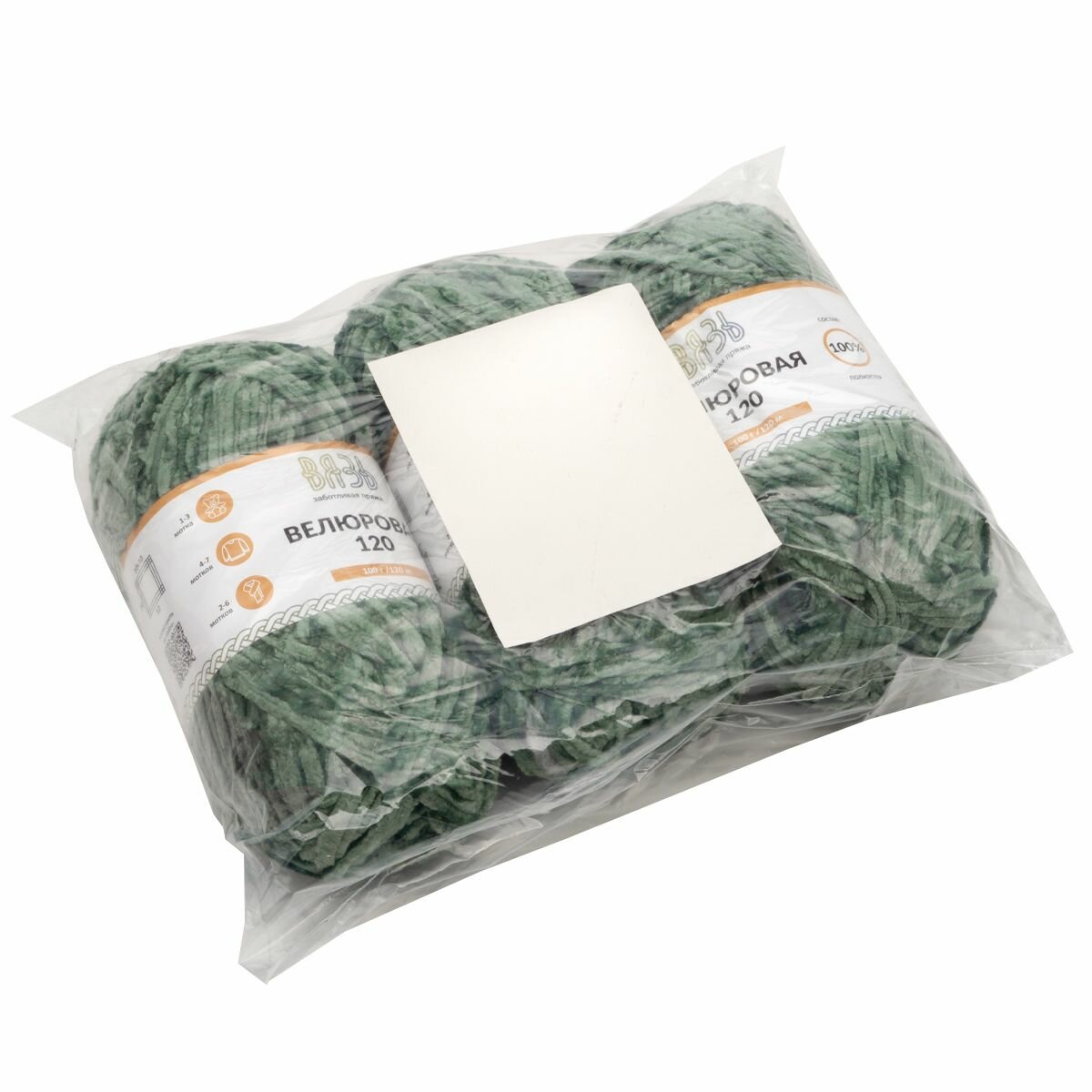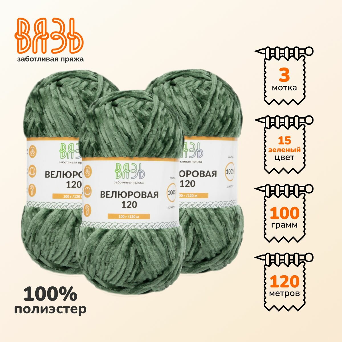 Купить Пряжа для вязания Вязь 'Велюровая 120', 100г, 120м (100% полиэстер) (15 зеленый), 3 мотка