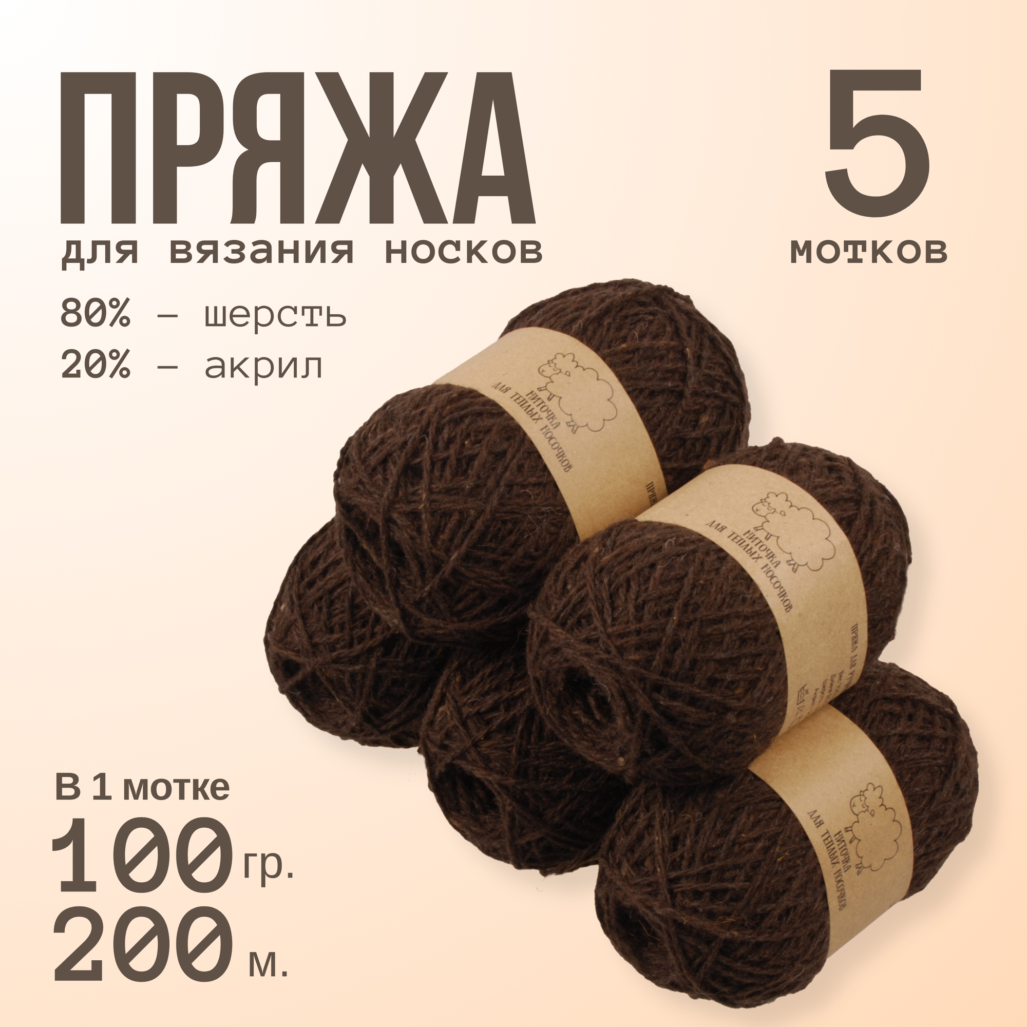 Пряжа ALPIRA "Шерсть для носков", 80% шерсть, 20% акрил, 100 г/200 м, коричневый меланж, 5 мотков