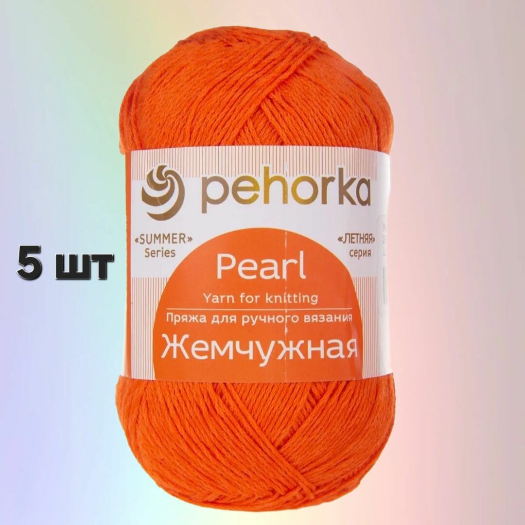Пряжа для вязания Пехорка 'Жемчужная', 100г, 425м (50% хлопок, 50% вискоза) (284 оранжевый), 5 мотков