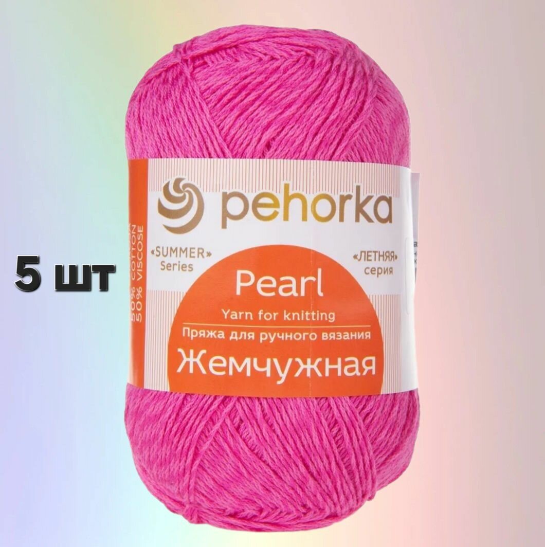 Пряжа Пехорский текстиль "Жемчужная", 50% хлопок, 50% вискоза, 425 м, №011, ярко-розовая, 5 шт по 100 г