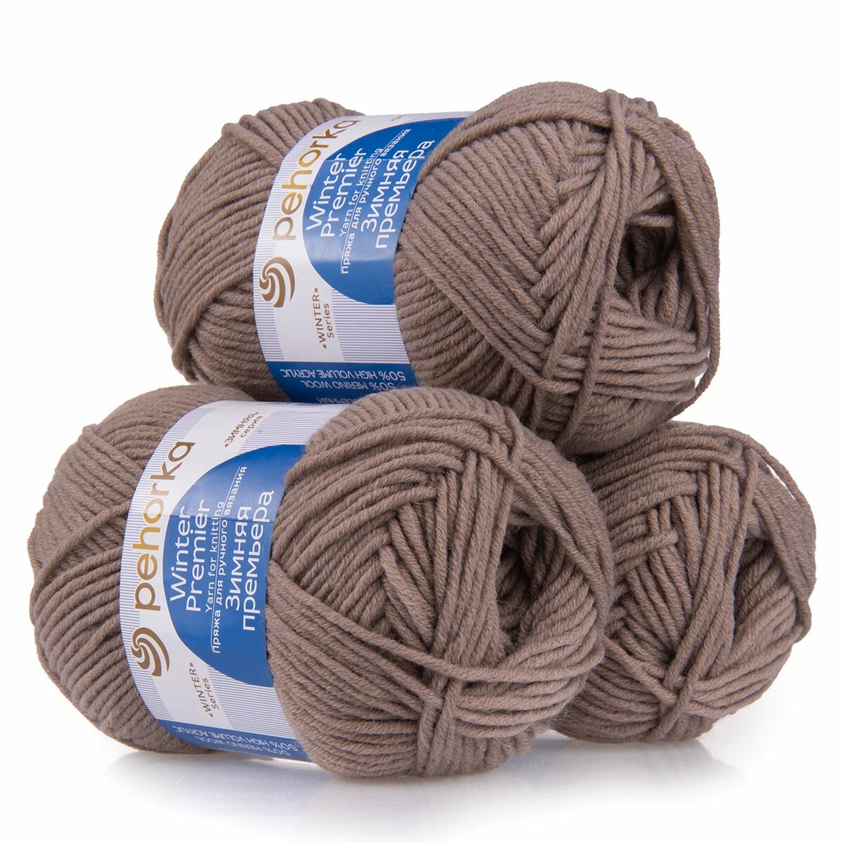 Купить Пряжа Пехорка Зимняя премьера серо-бежевый (274), 50%акрил/50%шерсть мериноса, 150м, 100г, 3шт