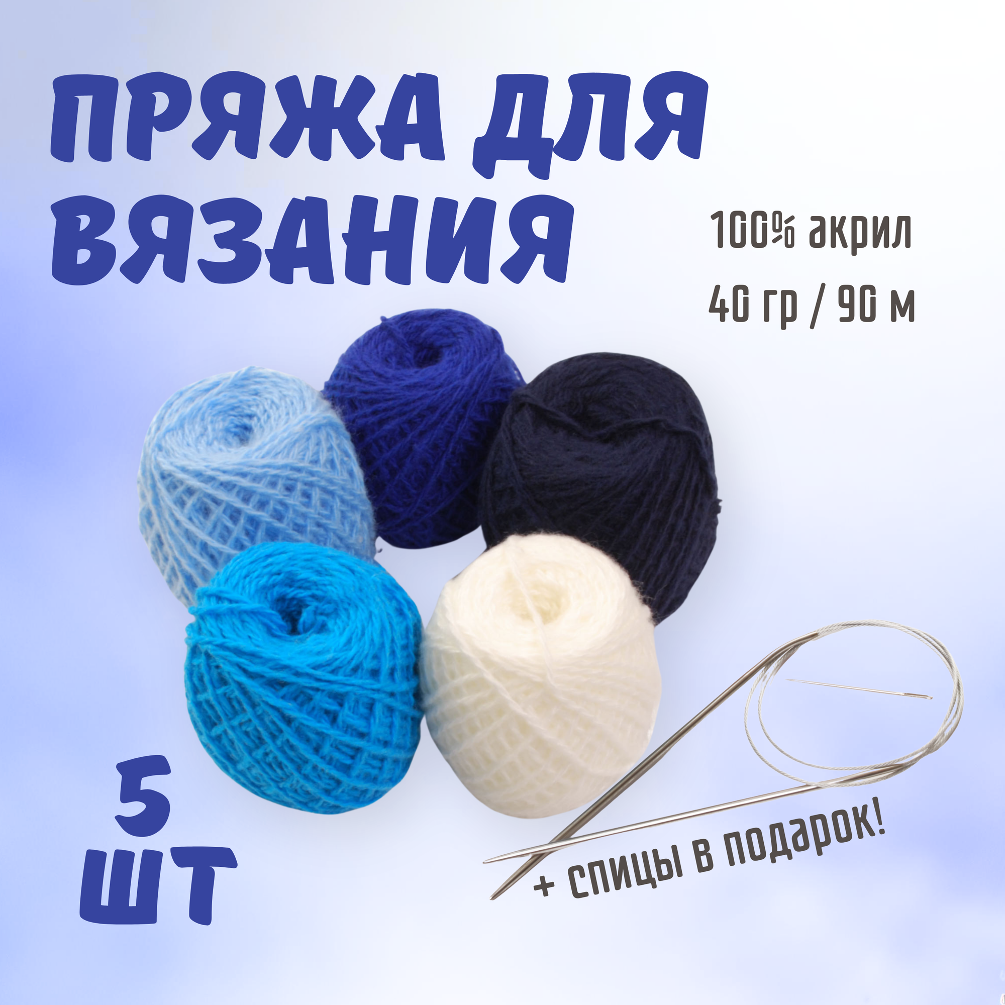 Купить Набор пряжи для вязания ALPI №5/5 (пряжа 100% акрил 5 мотков + спицы для вязания круговые) вес 200 грамм, голубой