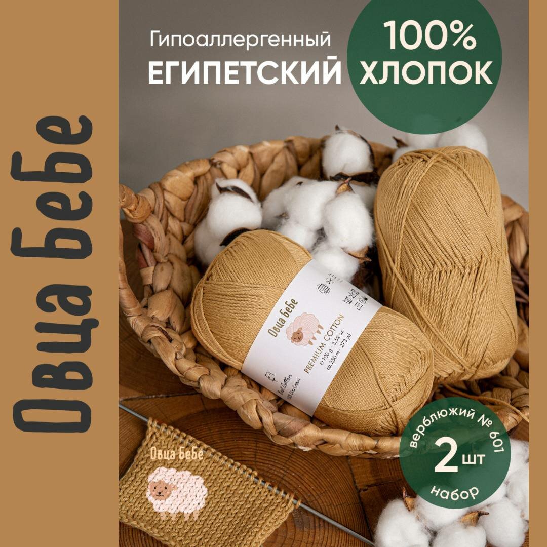 СохранитьПряжа для вязания Premium Cotton Giza, цвет верблюжий (набор из 2 шт), 100% хлопок интересное: