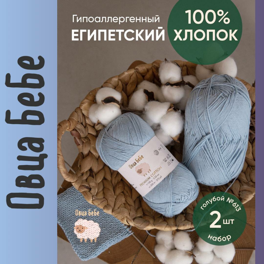 СохранитьПряжа для вязания Premium Cotton Giza, цвет голубой (набор из 2 шт), 100% хлопок интересное: