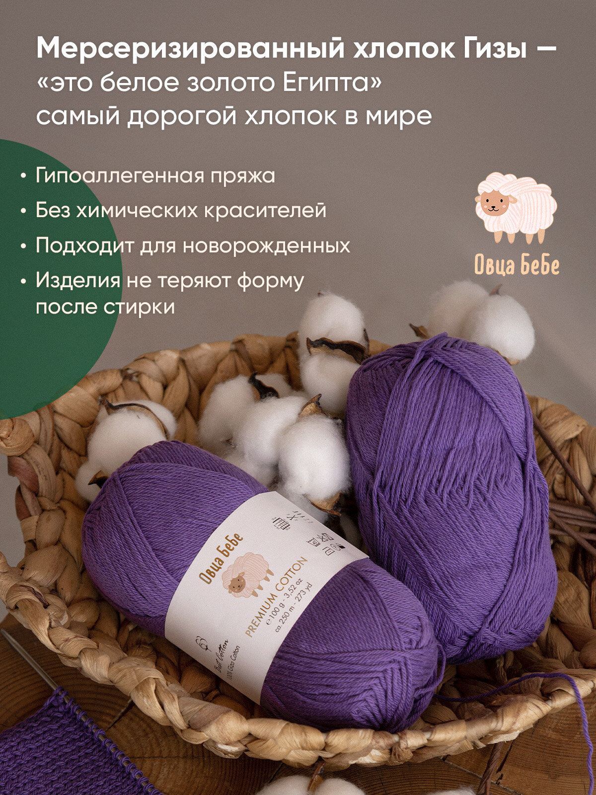 СохранитьПряжа для вязания Premium Cotton Giza, цвет фиолетовый (набор из 2 шт), 100% хлопок интересное: