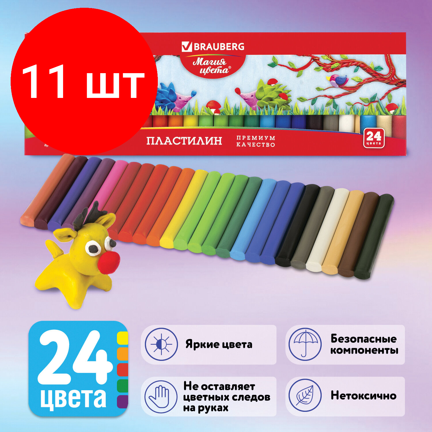 СохранитьКомплект 11 шт, Пластилин классический BRAUBERG "магия цвета", 24 цвета, 500 г, высшее качество, картонная упаковка, 103351 интересное: