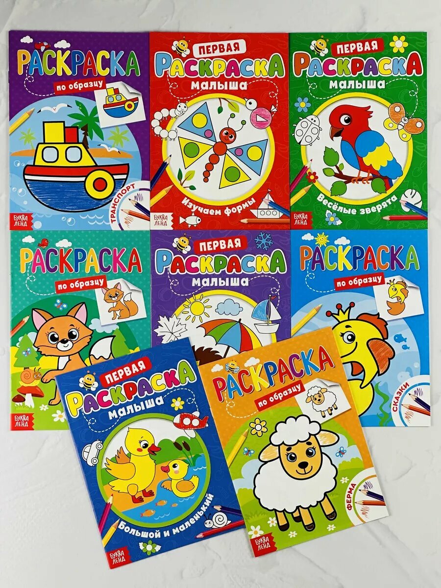 Набор рскрасок буква-ленд 8 книжек по 12 страниц, со стихами, развивающие, для детей и малышей