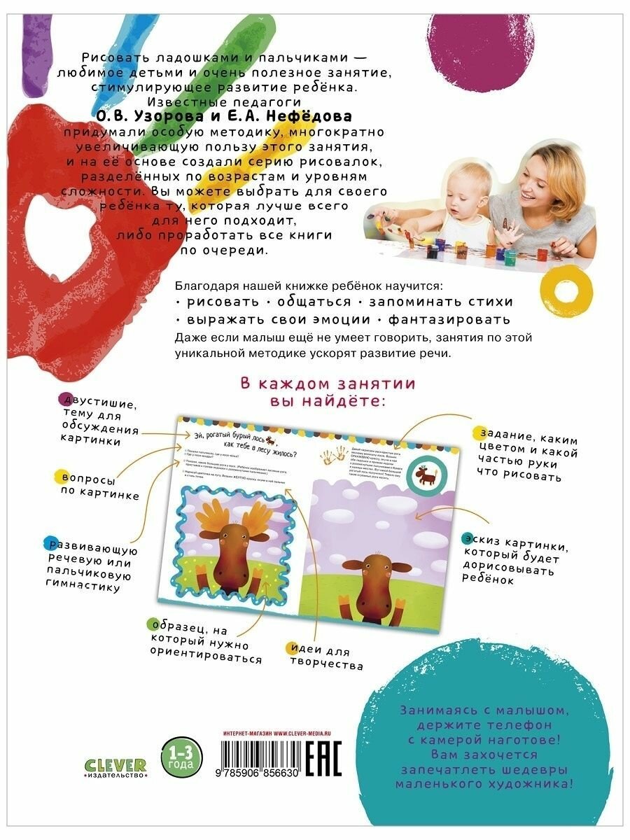 Рисуем ладошками 1-3 года. 1 уровень / Пальчиковые раскраски интересное: