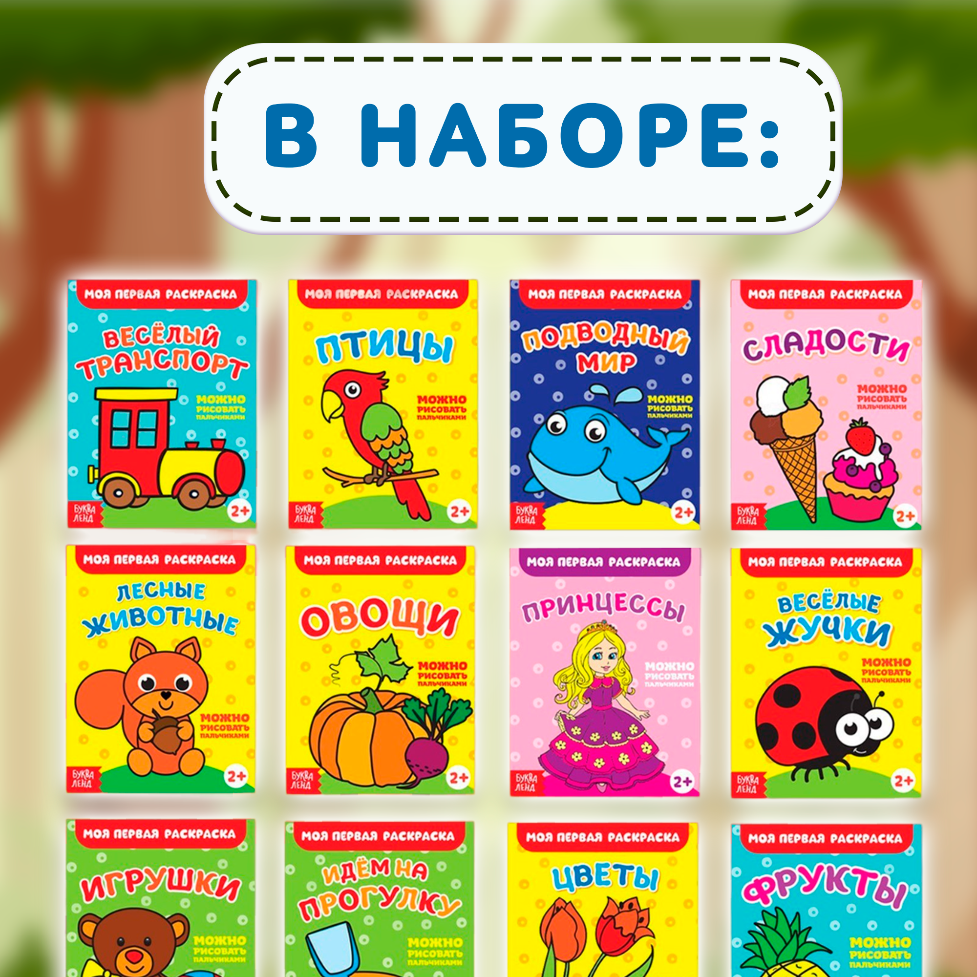 | Комплектация | Раскраски набор «Мои первые раскраски» - 12 шт. |