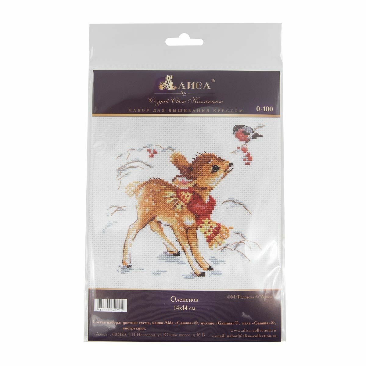 0-100 Набор для вышивания крестом алиса 'Олененок', 14*14 см