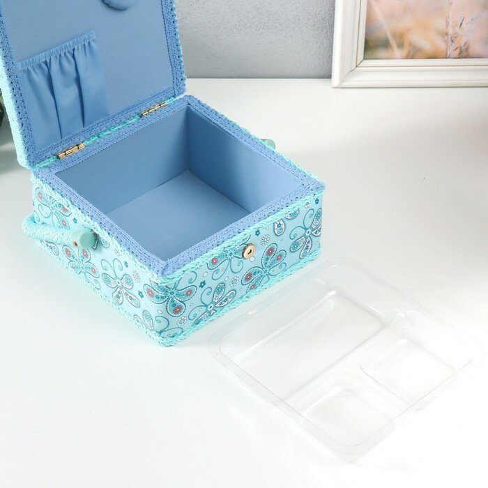 Шкатулка для рукоделия "Бабочки и цветочки на голубом" 20х20х11 см интересное: