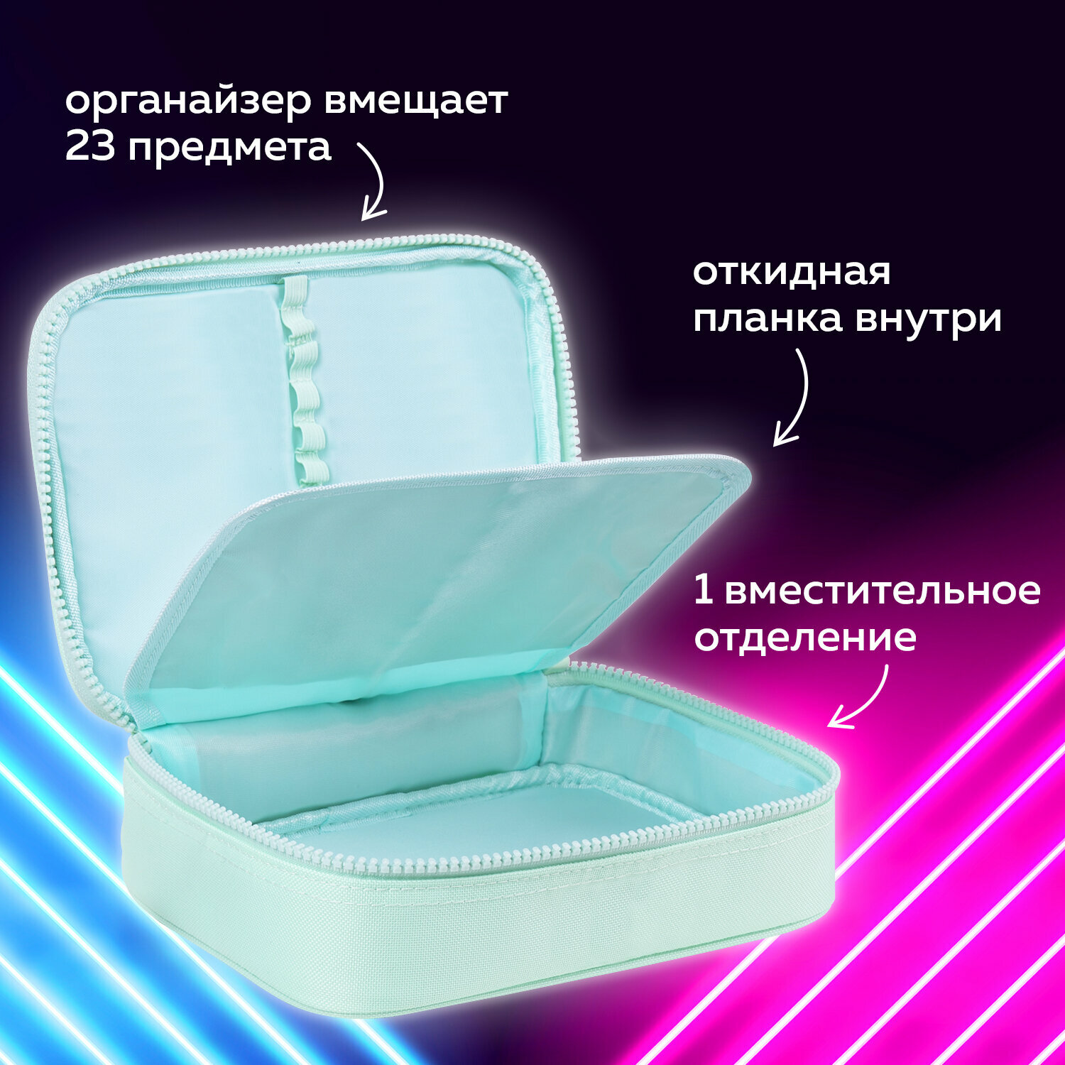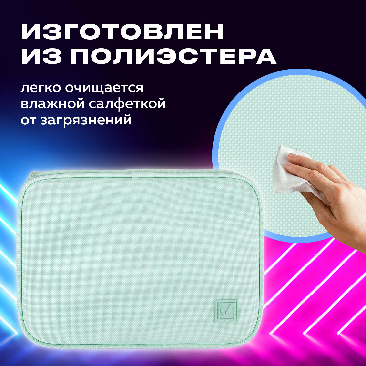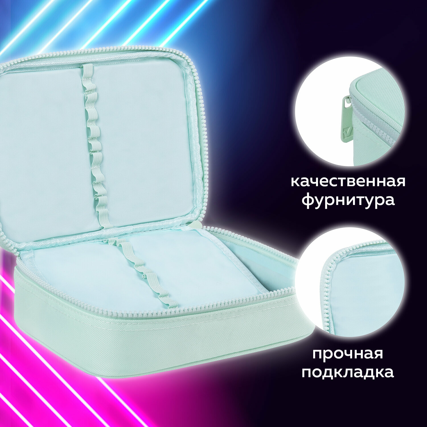 Пенал-косметичка BRAUBERG большой, 1 отделение, 1 откидная планка, ткань, 21x15x6 см, "Mint", 270705 интересное: