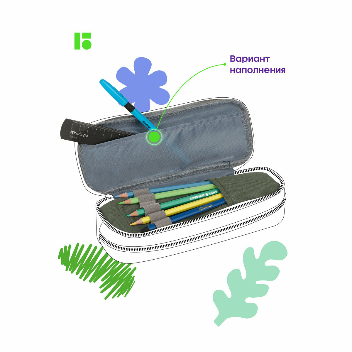 Пенал мягкий 2 отделения, 1 карман, 220×80×50мм, Berlingo «Classic military», полиэстер, внутр. органайзер