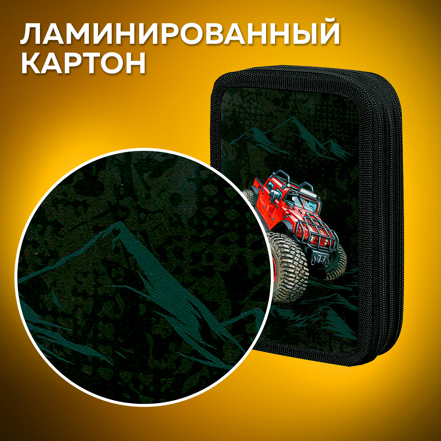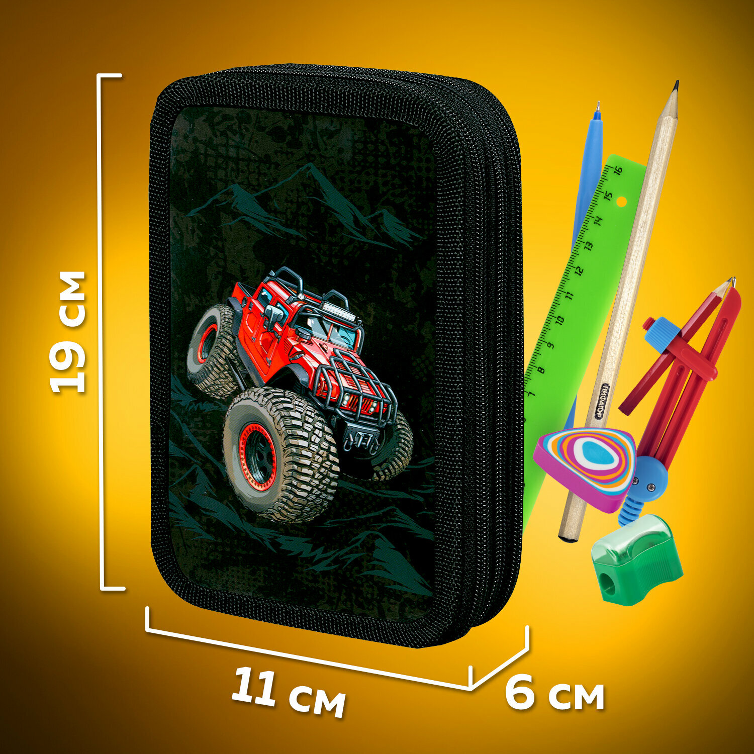Пенал школьный для мальчика для ручек, карандашей Пифагор, 3 отделения, ламинированный картон, 19х11 см, Big Wheels, 271548