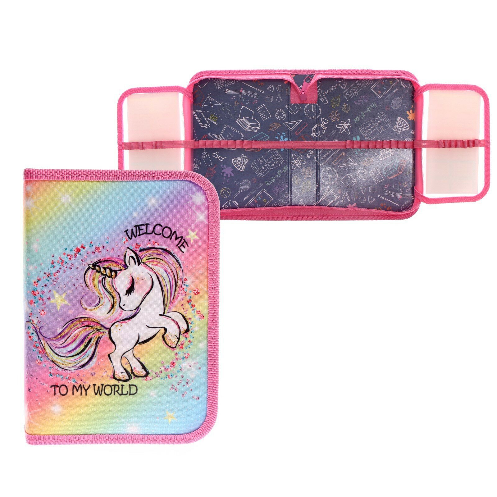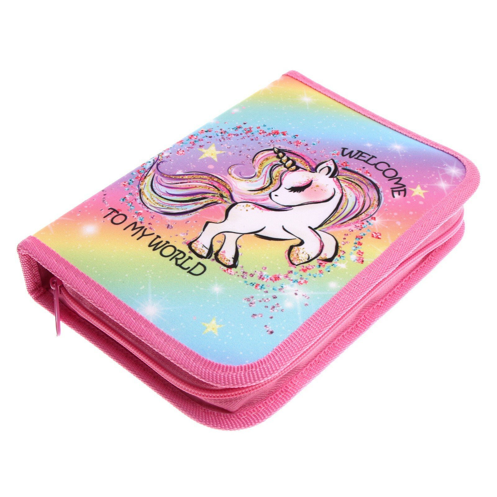 Купить Пенал 1 секция, 140 х 200 х 40 мм, 2 откидные планки, тканевый, ПКТ 09-20-1 "Радужная единорожка"