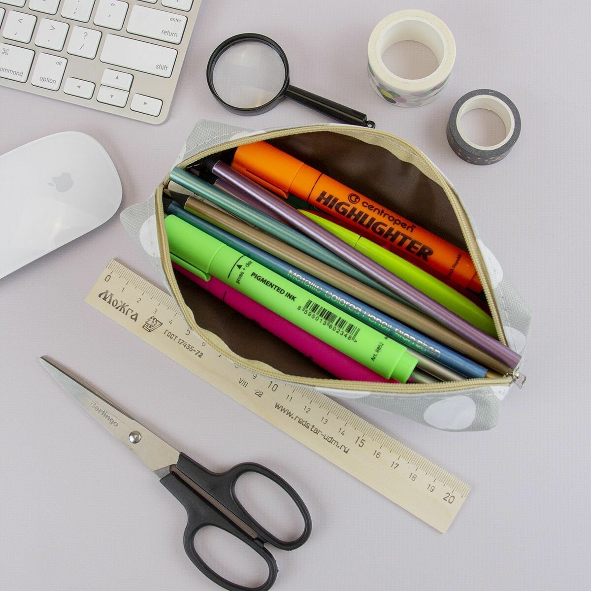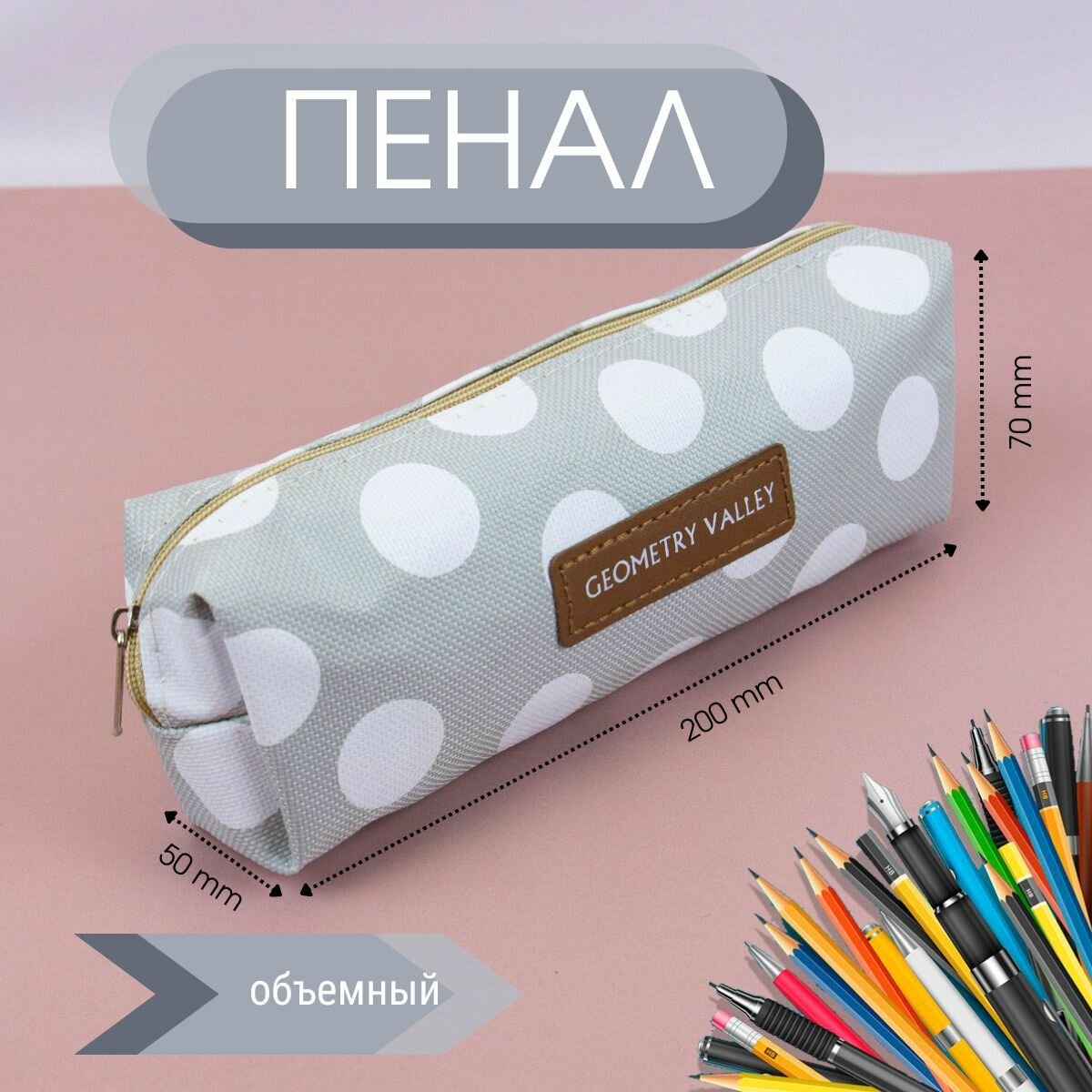 Школьный пенал для офиса Geometry Valley Tube, холщовый пенал-косметичка в Серый горошек интересное: